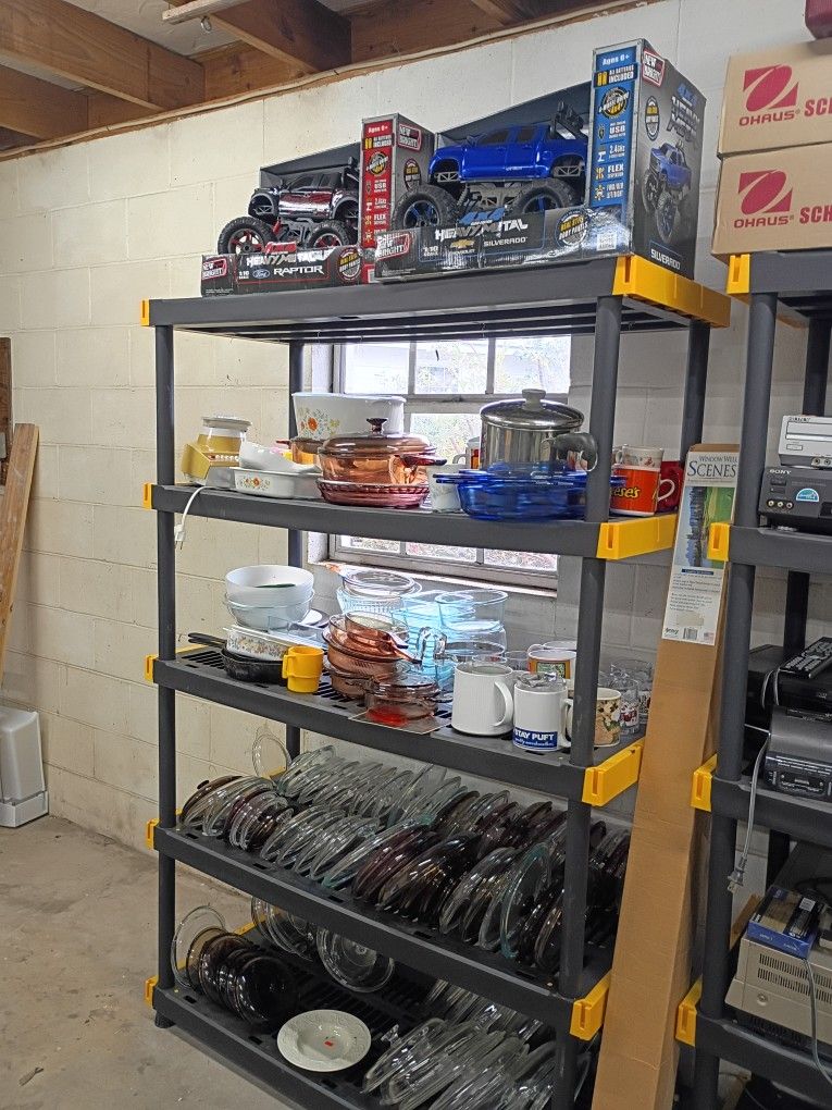 I have closed my eBay business and I am selling off my inventory. I have thousands of items. Some new, others used in great condition. I have collected a wide range of items which I am listing below. This is not everything but as much as I can remember off the top of my head. I am looking to see if there are any resellers out there that might like to make an offer on everything. I am including a picture for the general scope of what I have. Everything is for sale with the exception of some of the shelving units that things are displayed on. I cannot add more pictures because Marketplace only allows 10. Please reach out to me with any interest in purchasing larger quantities of things as I am trying to get rid of them, so I don't have to store them. I will/might be having a rummage/garage sale with the items at a later time, but I am not sure when List Toys Puzzles - new Baseball cards Fleer 1990 (I think 89) VCRs, DVD players Christmas cups Japanese bowls Bombay China tea cups and saucers Lots of Reebok and Vans shoes - used Some shoes new in box Pyrex bowls Corning ware/Pyrex lids - lots of sizes Film cameras and assessories Ranchero chain saw, with assessories Wireless access points Wired hubs Large RC trucks - new Crystal pitcher John Deer oil filters - new Ryobi miter saw 7" circular saw Lots of water filters - new Vacuum bags - new Belkin surge protector/extension cards - new Laser ink cartridges Inkjet cartridges Coleman gas lantern with case Audio Receiver School balances - new Auto parts, brake pads, shoes, oil Levi's jeans new and used various sizes Brand name jeans - new Coleman camping stove Sliding door doggy door Boxing gloves - new Tupperware Lots of ball caps from various Tool boxes Telescope - like new with assessories Advent speakers Used egg cartons many Craftsman wet/dry vacuum Bee hive with assessories - new Window well picture insert Various small coolers Various small water jugs Betamax Video recorder Mixers/blenders 16 x 25 x 4 air filters - new Recessed lightning x 8 - new Cisco business phones x 3 refurbish CD blanks Recording Media DVD blanks Recording Media Blu-ray blanks Recording Media Thermos x 2 Several 16/24 water drink to go cups (Stanley and others) Fermentation kit - new Small light bulbs - new Makeup Holiday glasses from Arby's (1980's) Stuffed animals Maglight 2/3 D cell flashlights Double swing gate hardware kit - new 2 sets of swimming flippers Lots of magazines Country Life Saints bobblehead Hepa filters Film slide viewer transfer