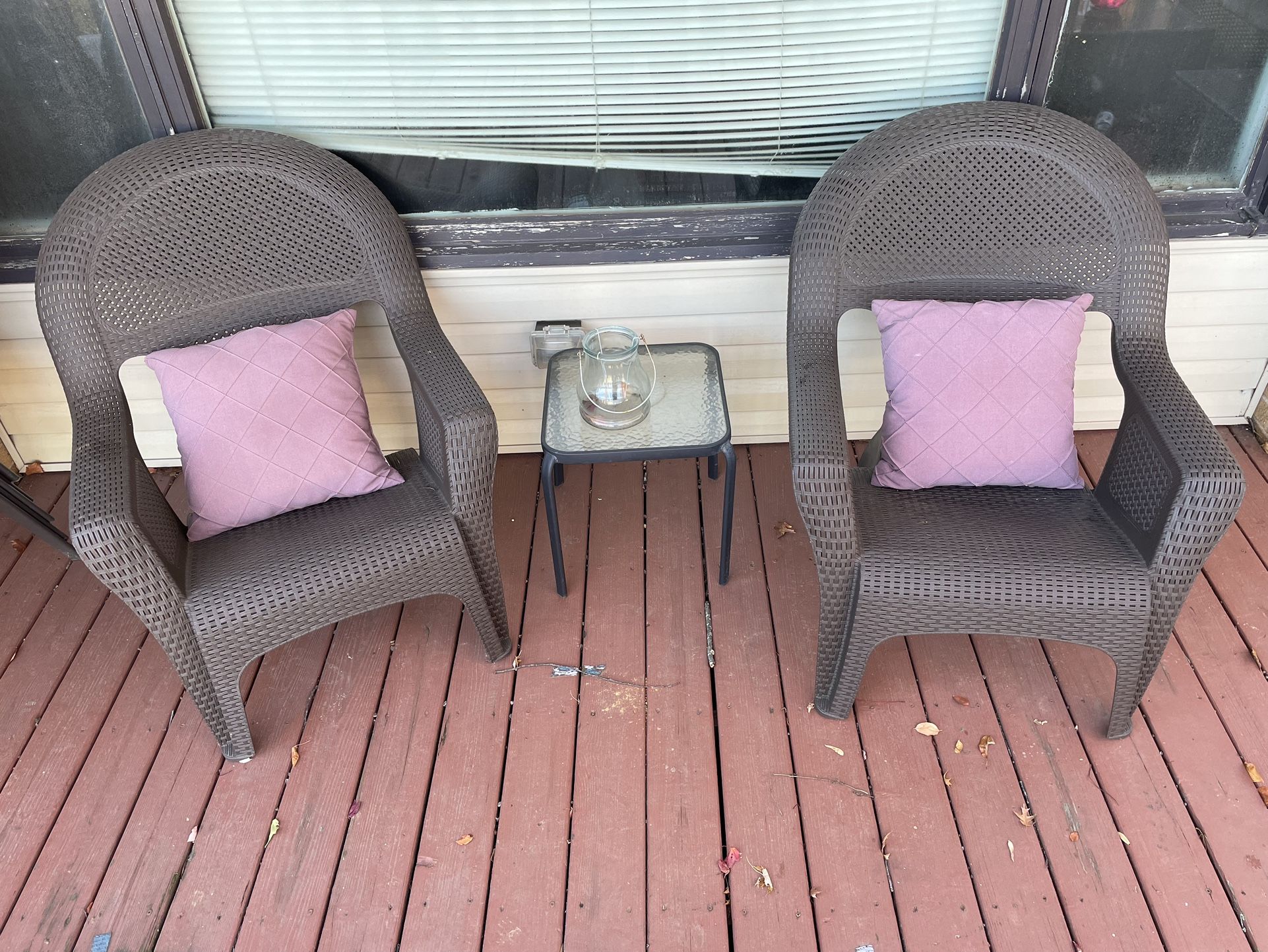 2 Chairs with pillows and table in great condition. Must be able to fit items in your vehicle. Make me a good offer!!