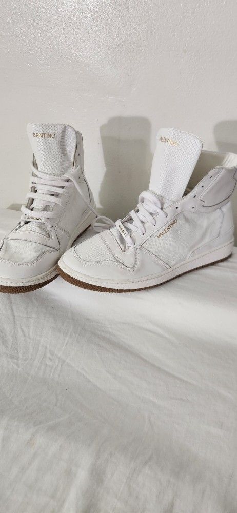 White high-top Sneakers Rubber trim Round-toes Lace-up closure to uppers Size 13 Moderately worn with minimal markings