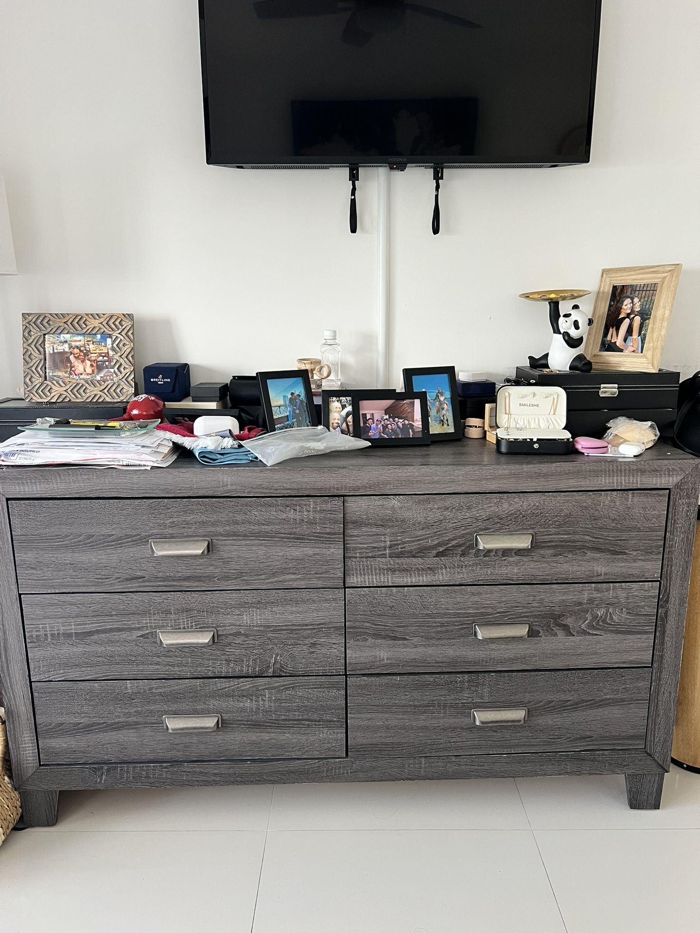 Anastasia 6-Drawer Grey Dresser 33 in. H x 16.5 in. W x 58 in. D