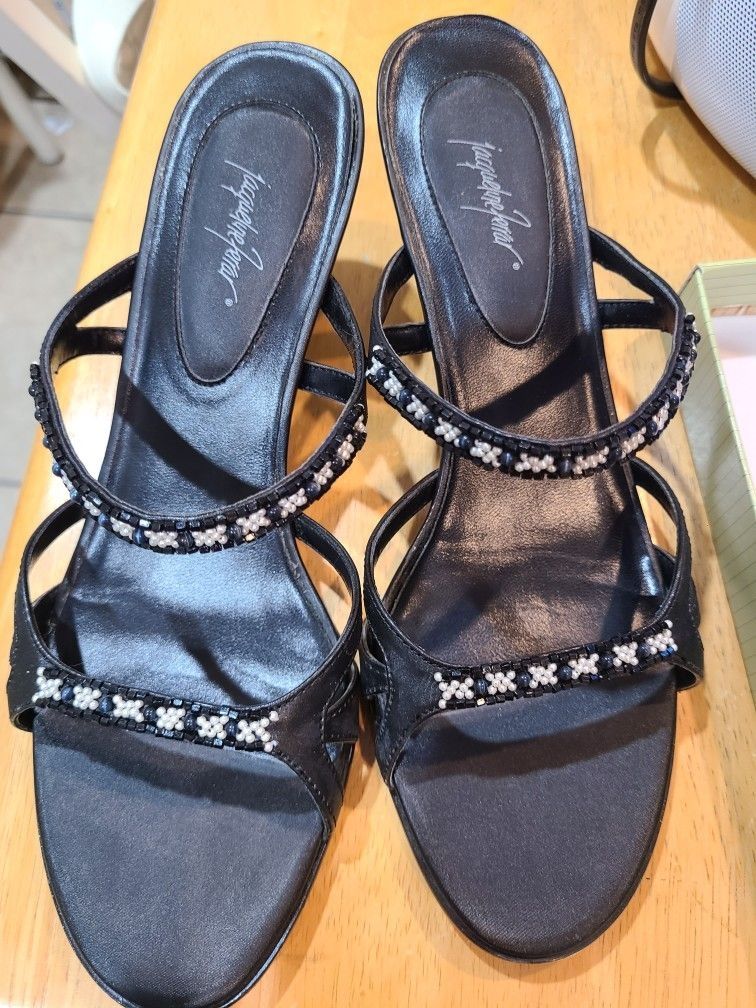Size 8 dress sandals with short heel. Pretty black and white beads. Excellent used condition. DMV area of Thousand Oaks. Cash, no holds $2