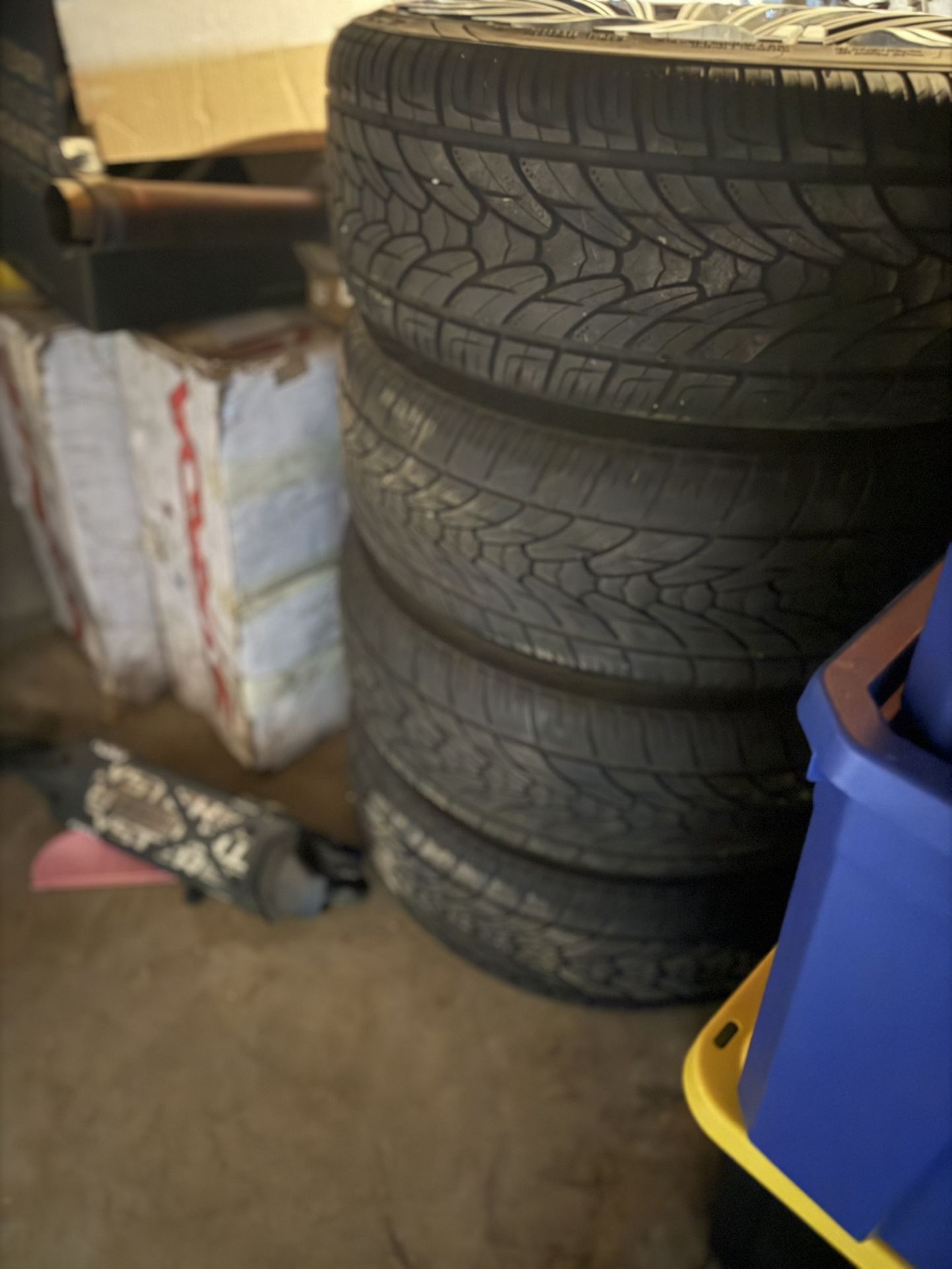 I got 4 26” rims that’s on tires and I got 2 extra rims I’m selling them all together for 1300 the truck in the picture is not for sale also tire size is 295/30z/r26