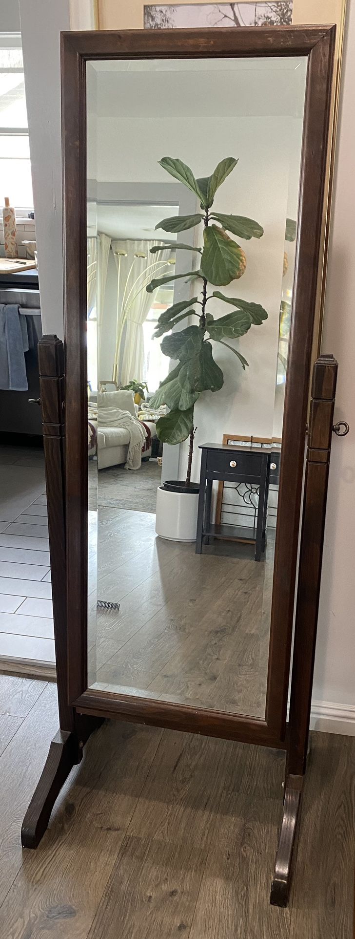 Freestanding full body mirror. Solid wood with dark brown stain. Some wear on the backside only (see last 3 photos).