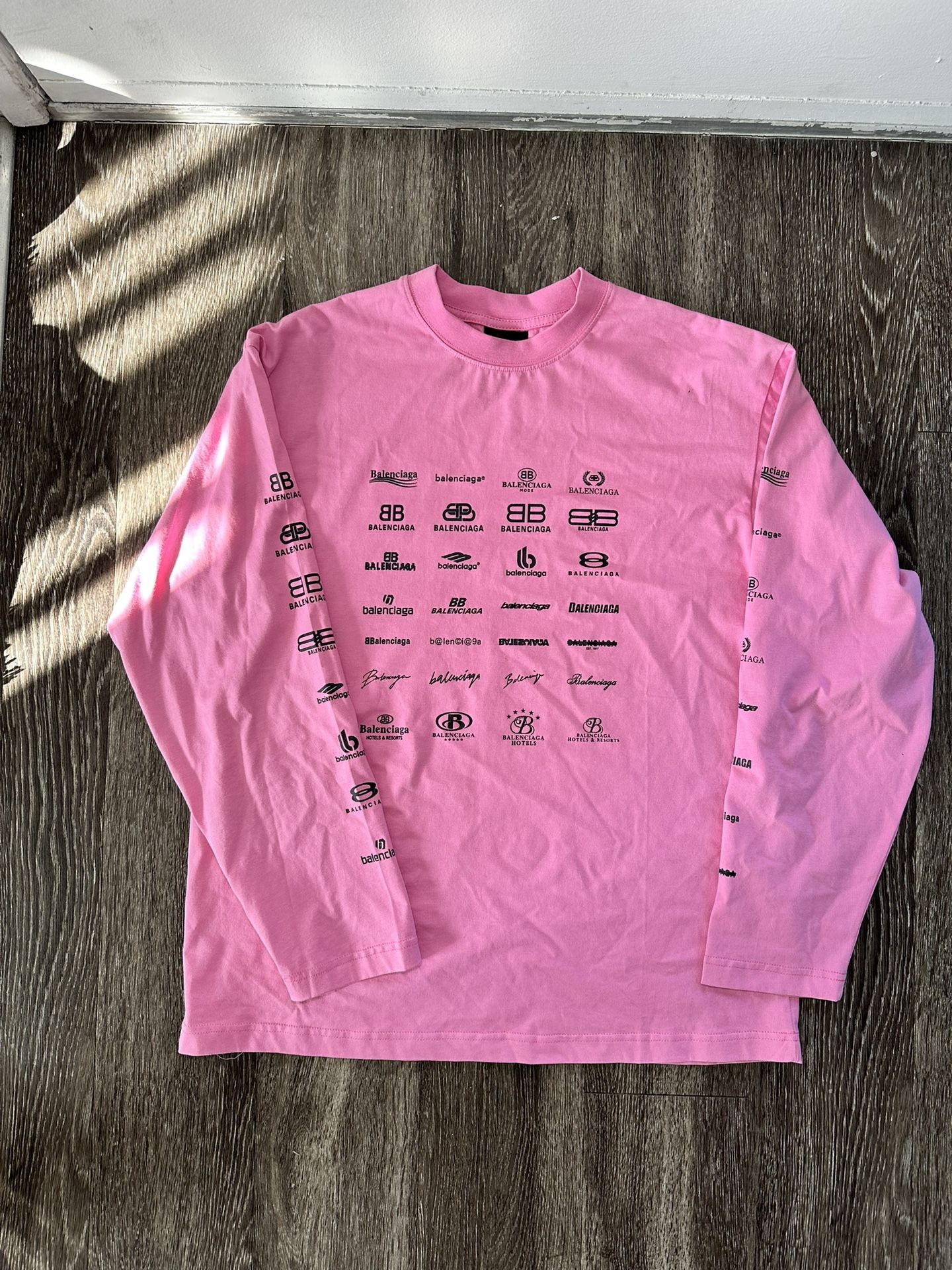 Pink Balenciaga Long Sleeve T Shirt With Every Balenciaga Logo