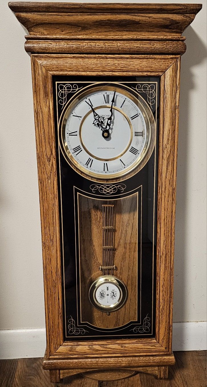 Daniel Dakota Westminster Chime Quartz Wood Wall Clock Glass Hinged Door Front