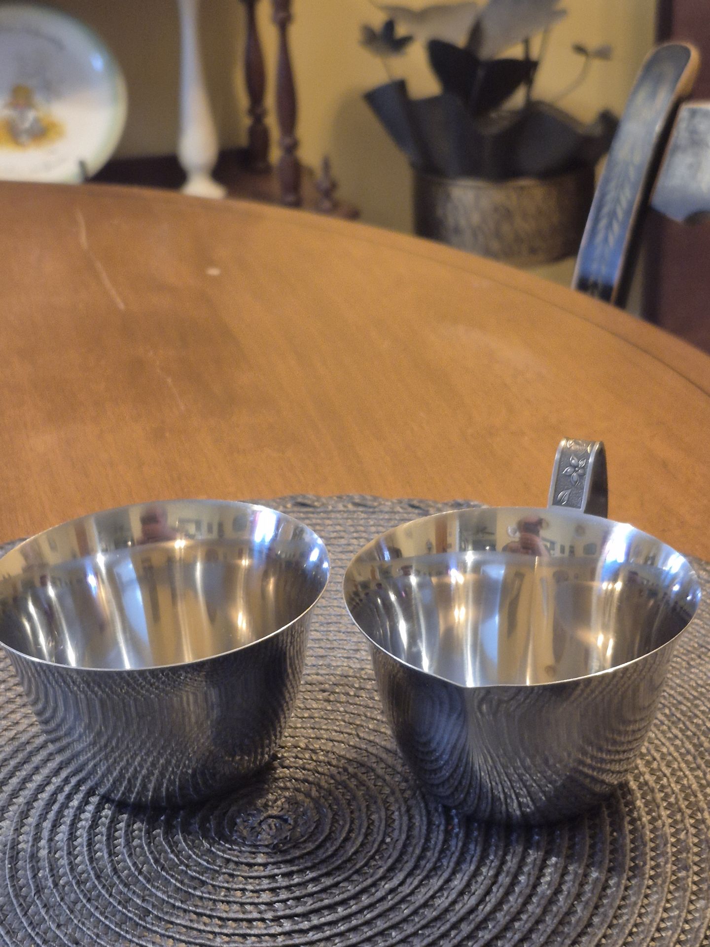 Stainless steel coffee creamer and sugar bowl
