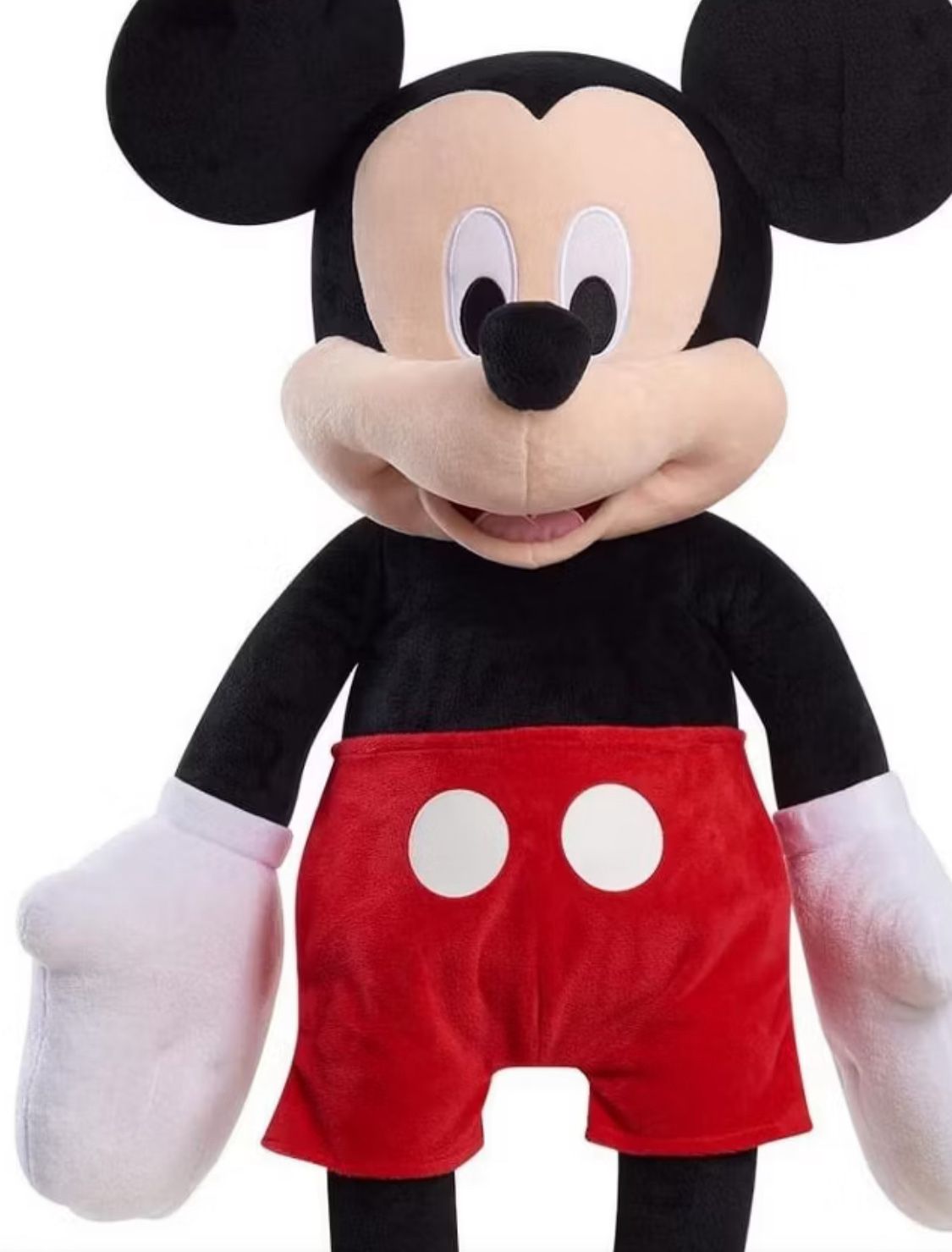 The Disney Baby Mickey Mouse Jumbo Stuffed Animal Plush Toy is soft and cuddly provides maximum huggable fun anytime, anywhere. Made of 100 percent polyester, the classic Disney character comes dressed in his iconic red pants adorned with white buttons, yellow shoes and white gloves. This jumbo cuddly toy stands tall, making it an ideal play pal for little ones. Bring home the oversized Disney Mickey Mouse plush today and surprise your child with the magic and fun of this timeless character. Ages 3+