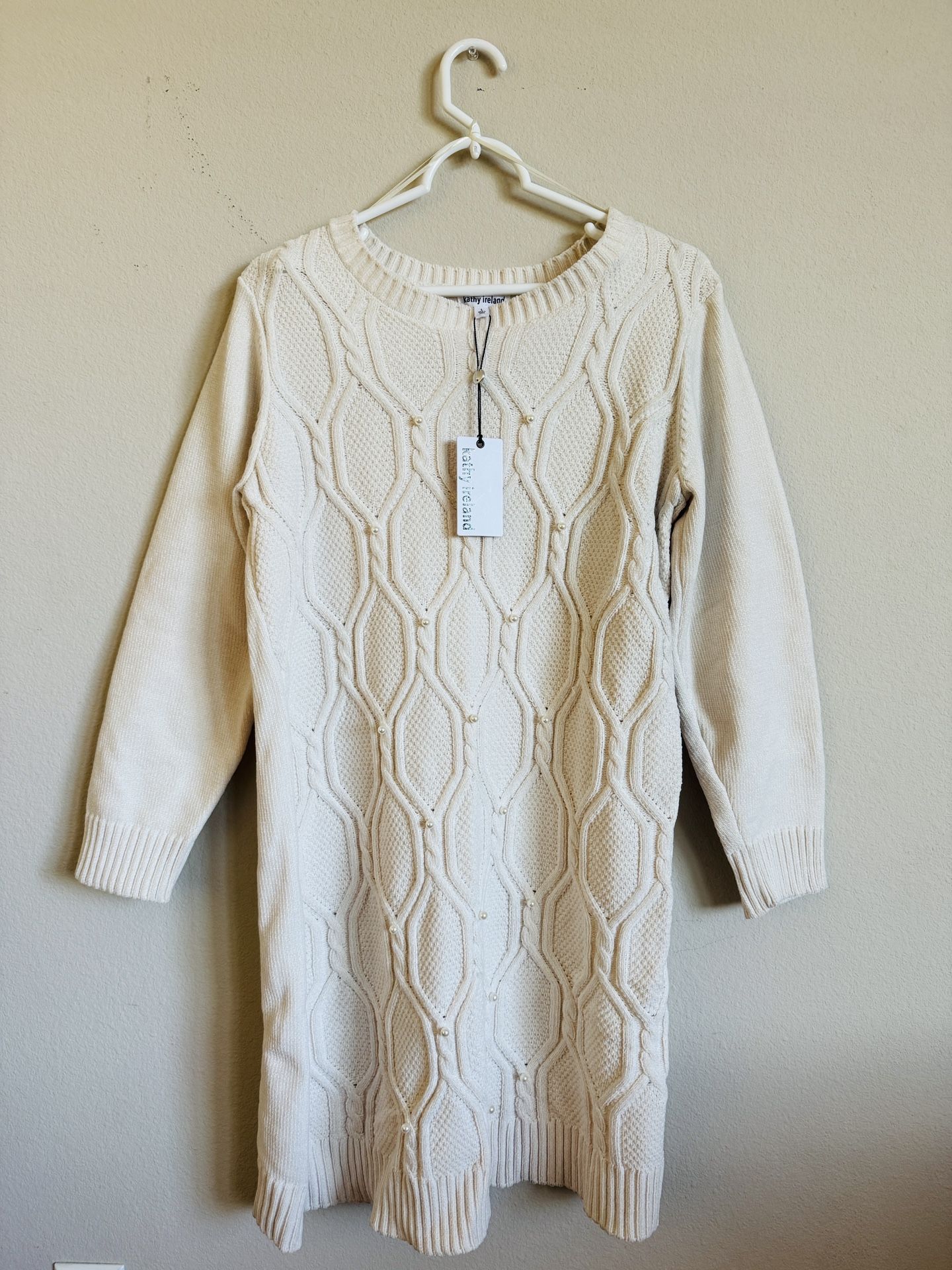 NEW. White knee-length knitted sweater dress. Retail price $26.99 SELLING for $10 OBO.
