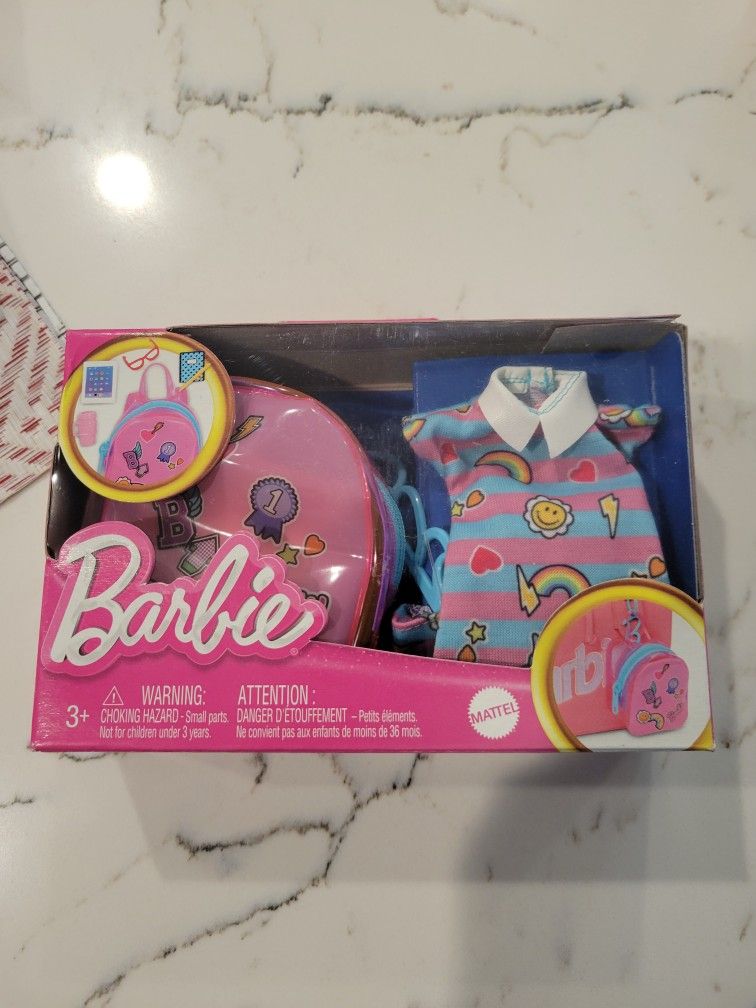 BRAND NEW MATTEL BARBIE SET. BACKPACK, CLOTHES, ACCESSORIES. LOOK AT ALL THE PICTURES I'VE INCLUDED AND AGAIN BRAND NEW. GREAT CHRISTMAS GIFT