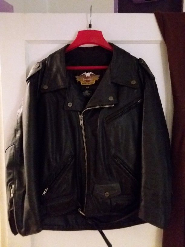 2 leather Harley coats. Traditional style. No damage, all zippers and buttons function as new. Hardly worn
