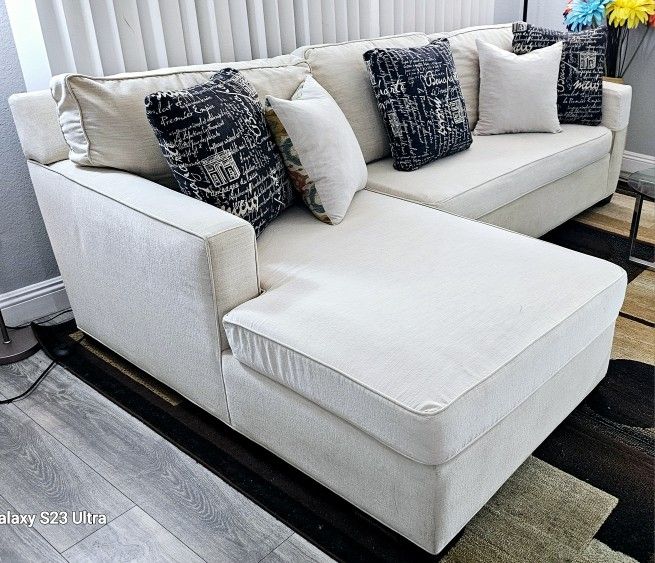 Excellent condition!! Beige 2-piece fabric sectional, very clean, removable covers for washing, delivery available!