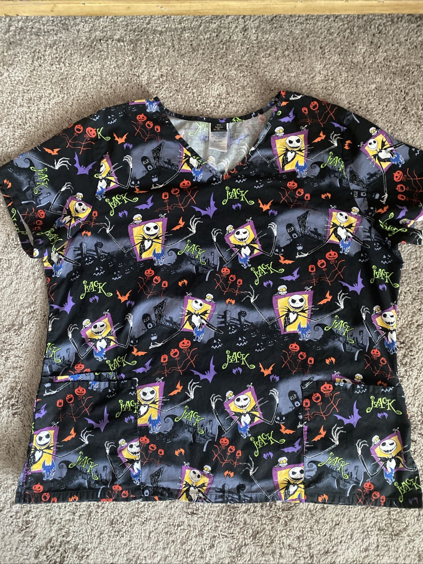 Disney Tim Burton’s Nightmare before Christmas Scrub top in excellent condition slightly worn well kept very clean and comfortable, size XL