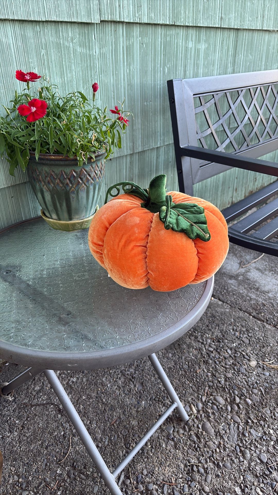 Soft velvet pumpkin 8” high, 9.5” wide. Excellent condition. Pick up only