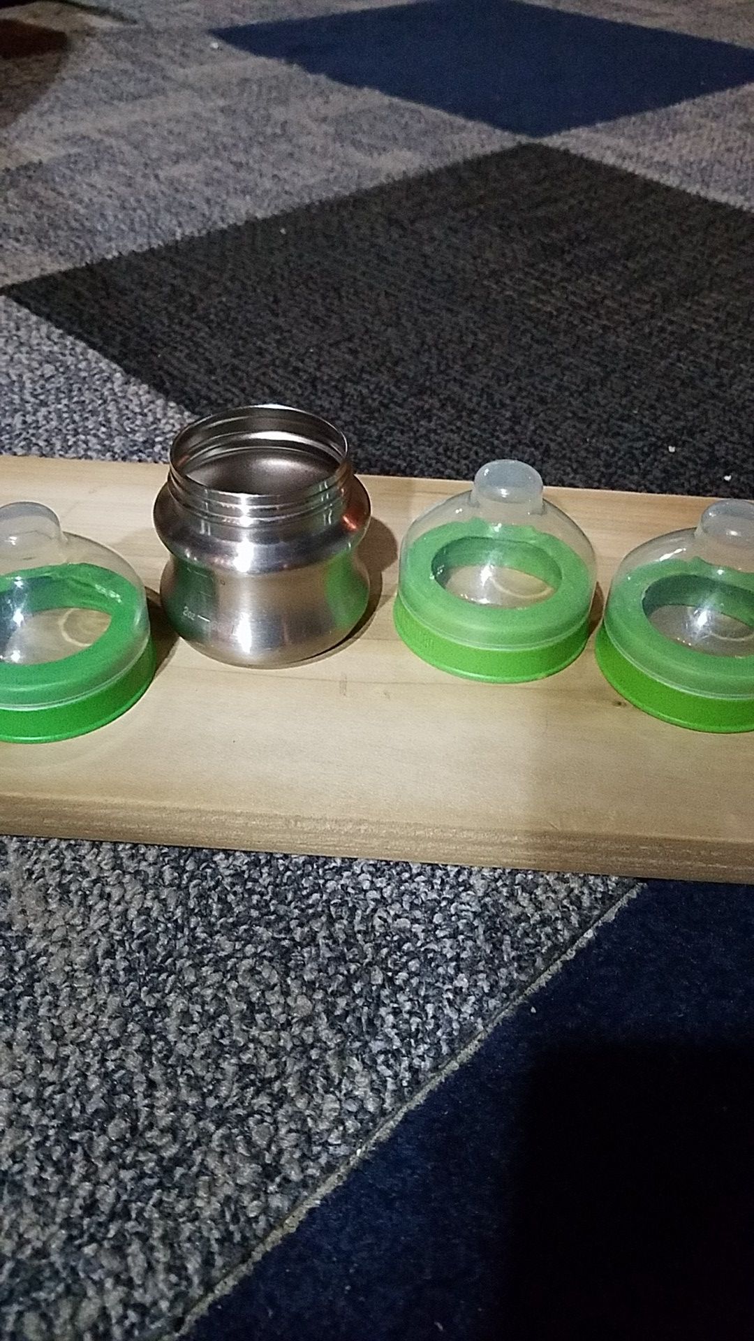 Ditch (most of) the plastic. One 5 ounce Klean Kanteen Kid Kanteen stainless steel baby bottle. Three nipple rings and caps, no nipples included. Other tops are available to make this a more versatile container after they move past the bottle stage.