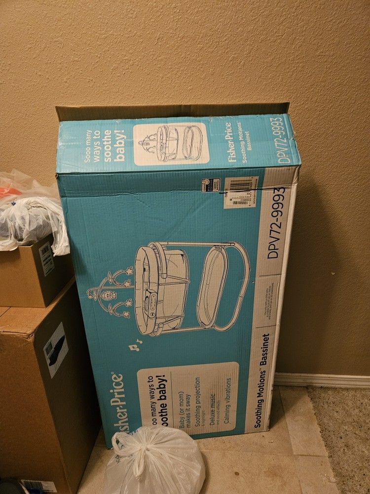 Bassinet with nightlight. Places music and vibrates. Just need batteries.