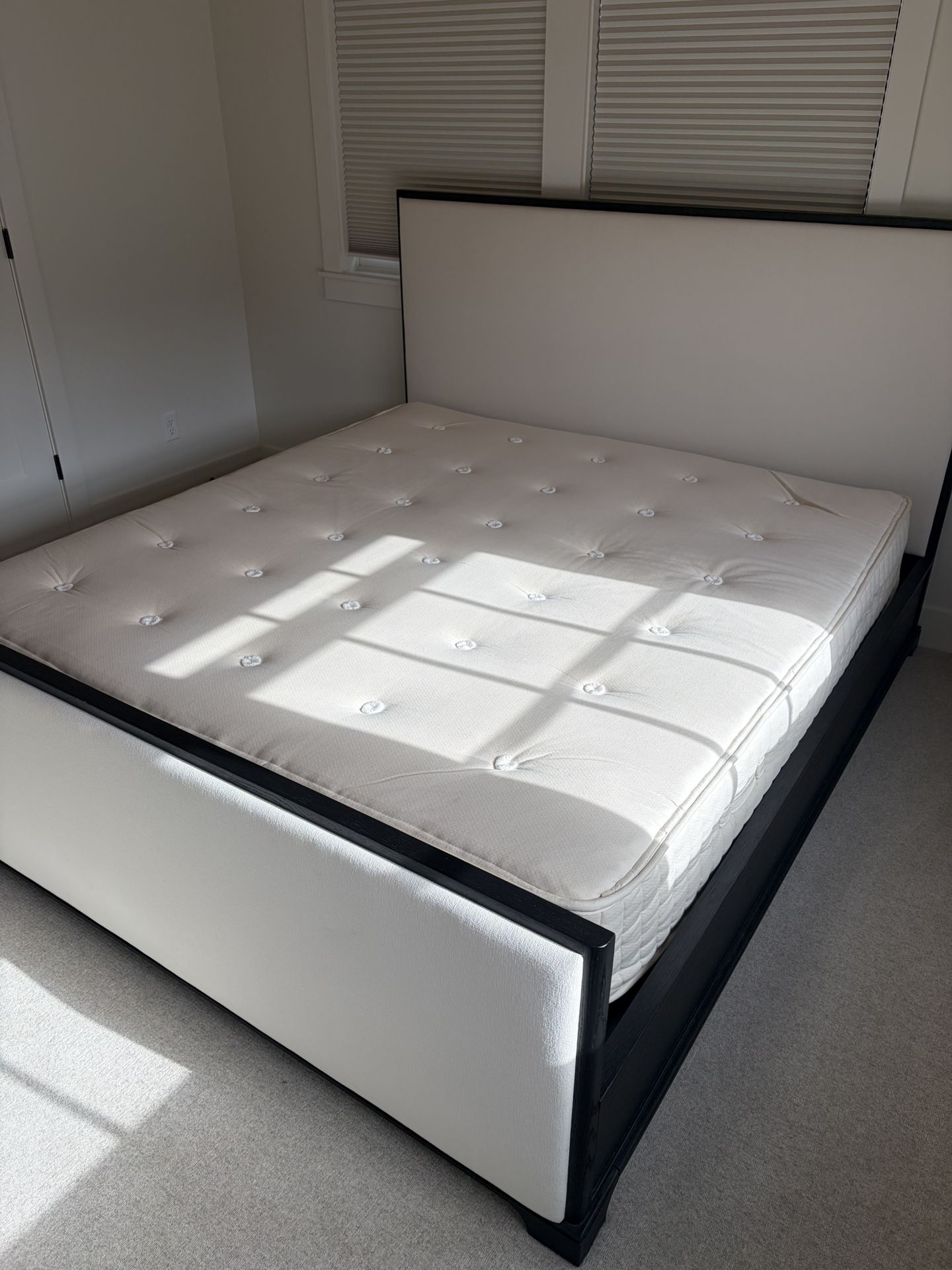 Used for a year, triple covered. Decided to go with another mattress with springs so selling this one.