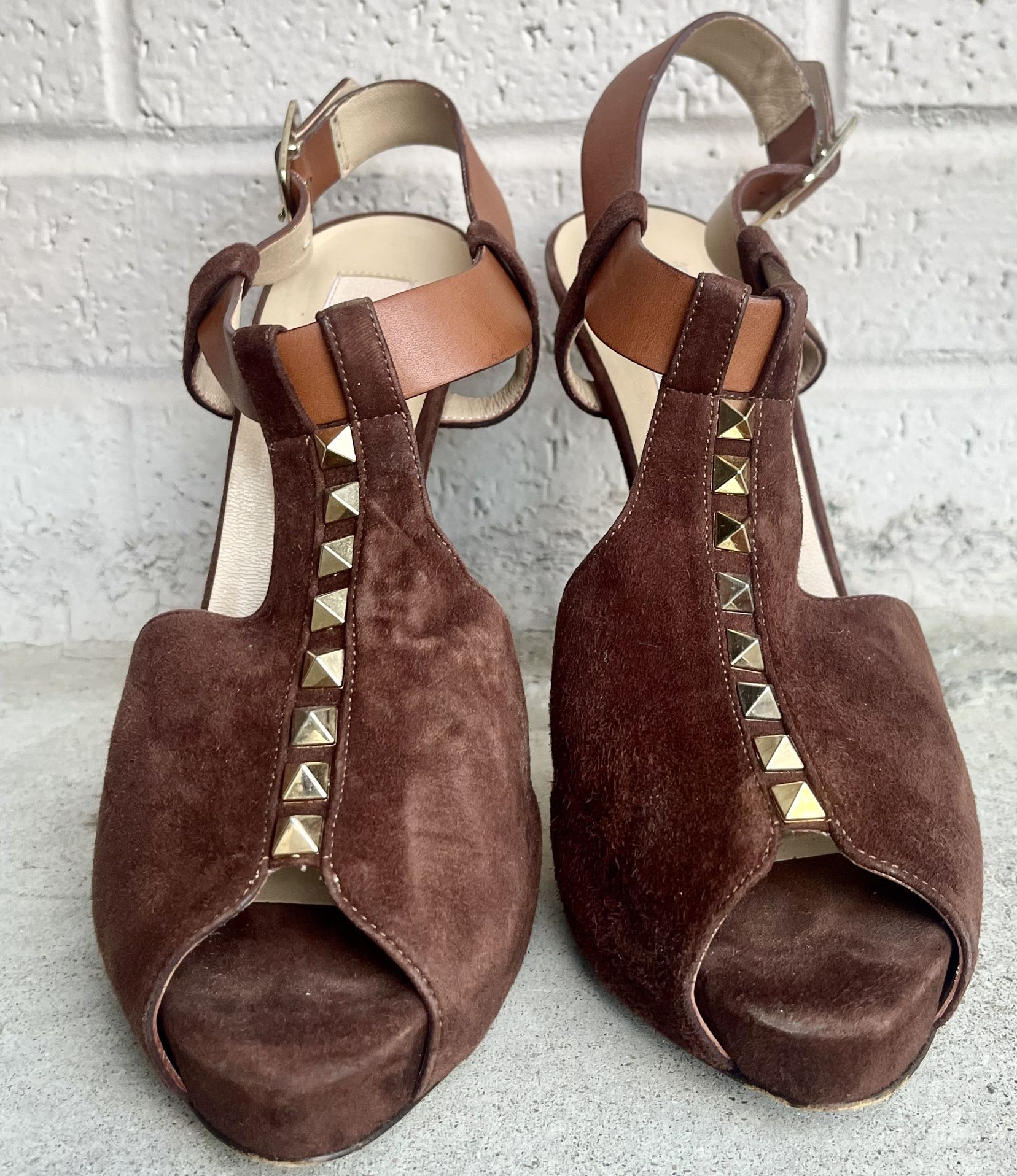 Valentino Garavani Rockstud Strap Sandals Size EU 39|9 US Retail $995 Wide studded leather T-strap 4" inch heel Grained leather upper with rockstud strip in the middle Closed toe Adjustable ankle strap Leather lining and sole 200 or best offer
