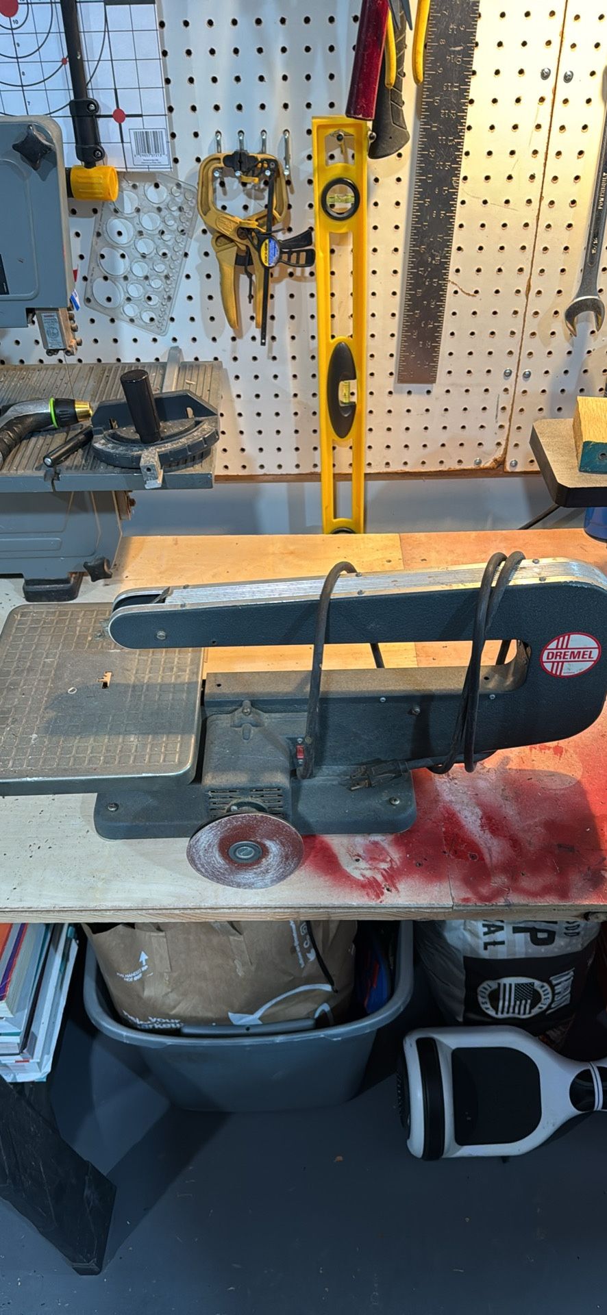 Hobby size jig saw with sanding disk. Pretty old but runs fine. I have extra blades also