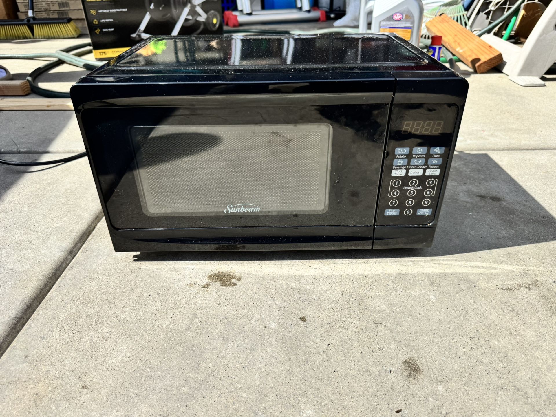 Fully Functional Microwave Just dirty and stained due to over cooking a potato Dimensions: 17-12-9