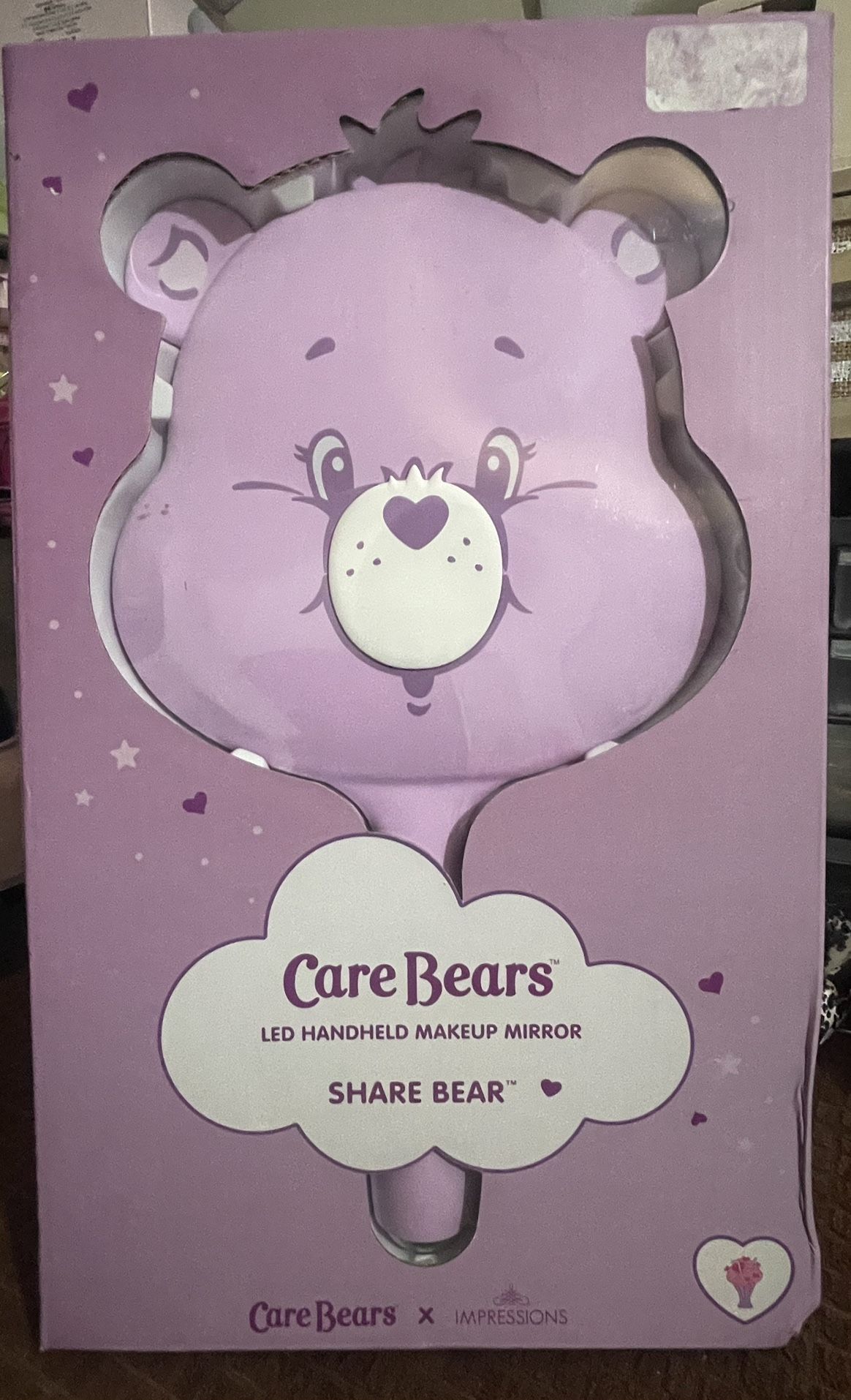 Care Bears x Impressions Vanity LED Handheld Makeup Mirror, specifically the Share Bear edition.