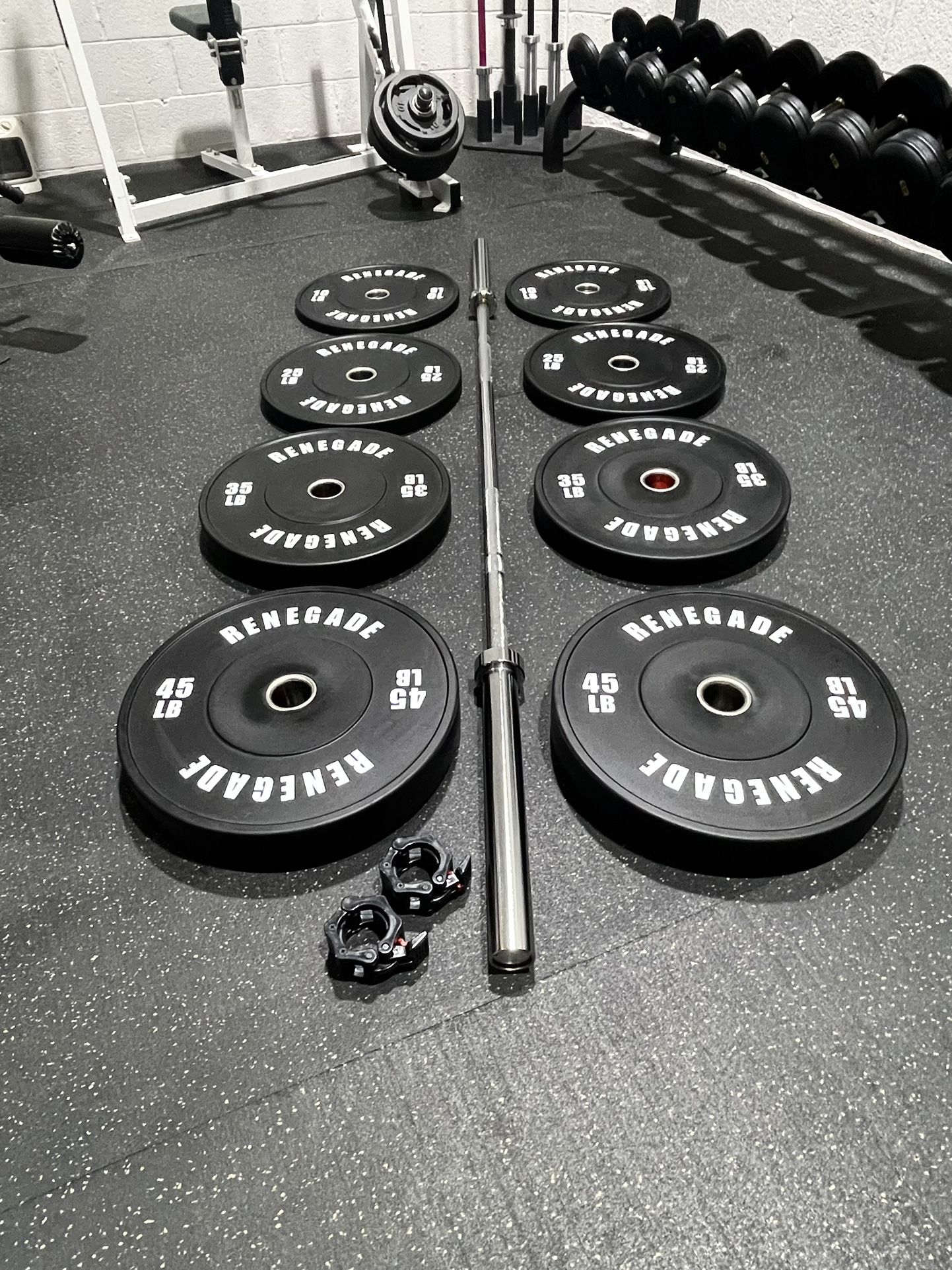 🔥🔥🔥Brand New Renegade 230 Pound Olympic Bumper Plate Set With Chrome CrossFit Olympic Barbell Free Delivery🚚