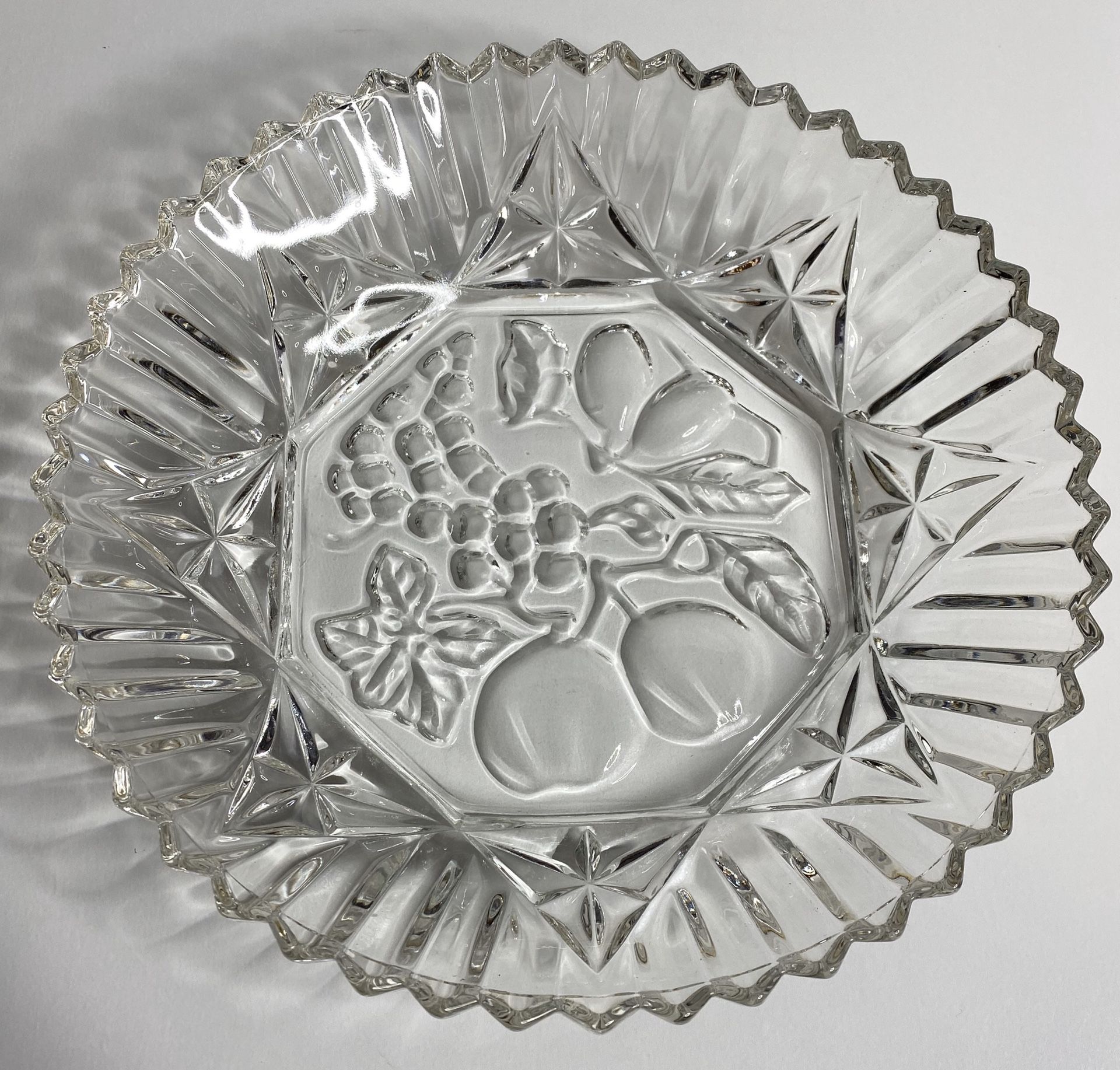 Antique Depression Glass Fruit Grapes Ruffled Plate, Large Bowl, Small Bowl