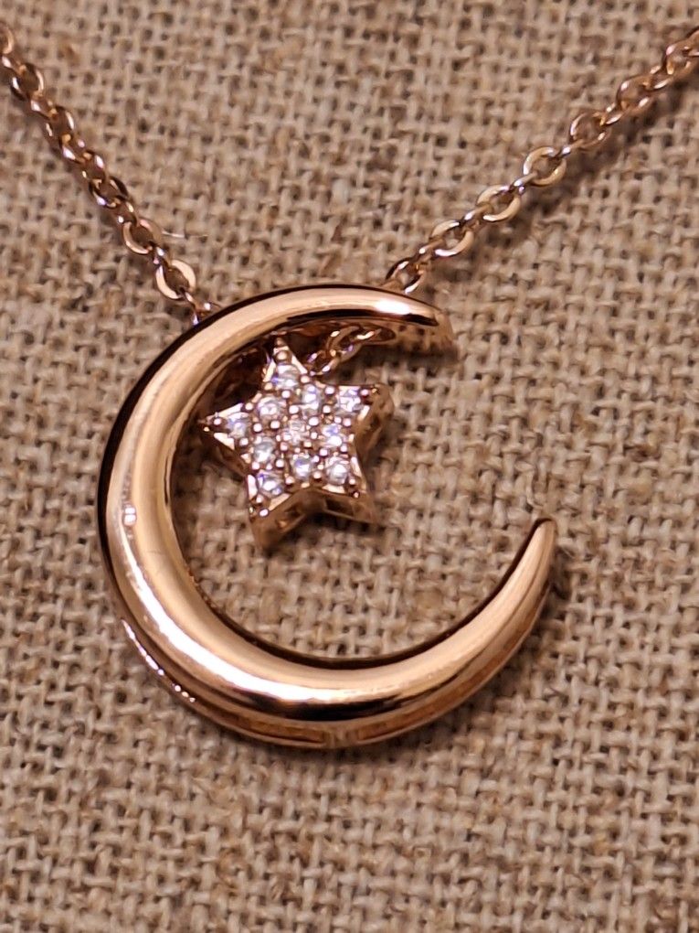ROSE GOLD TONE CUBIC ZIRCONIA STAR PENDANT AND NECKLACE NEW WITH PACKAGING