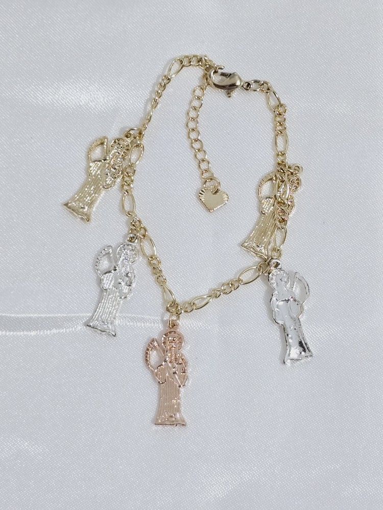 14k gold plated tricolor Santa Muerte Bracelet Pulsera de Santa muerte laminada en 14k Size; 8/9 lengh New