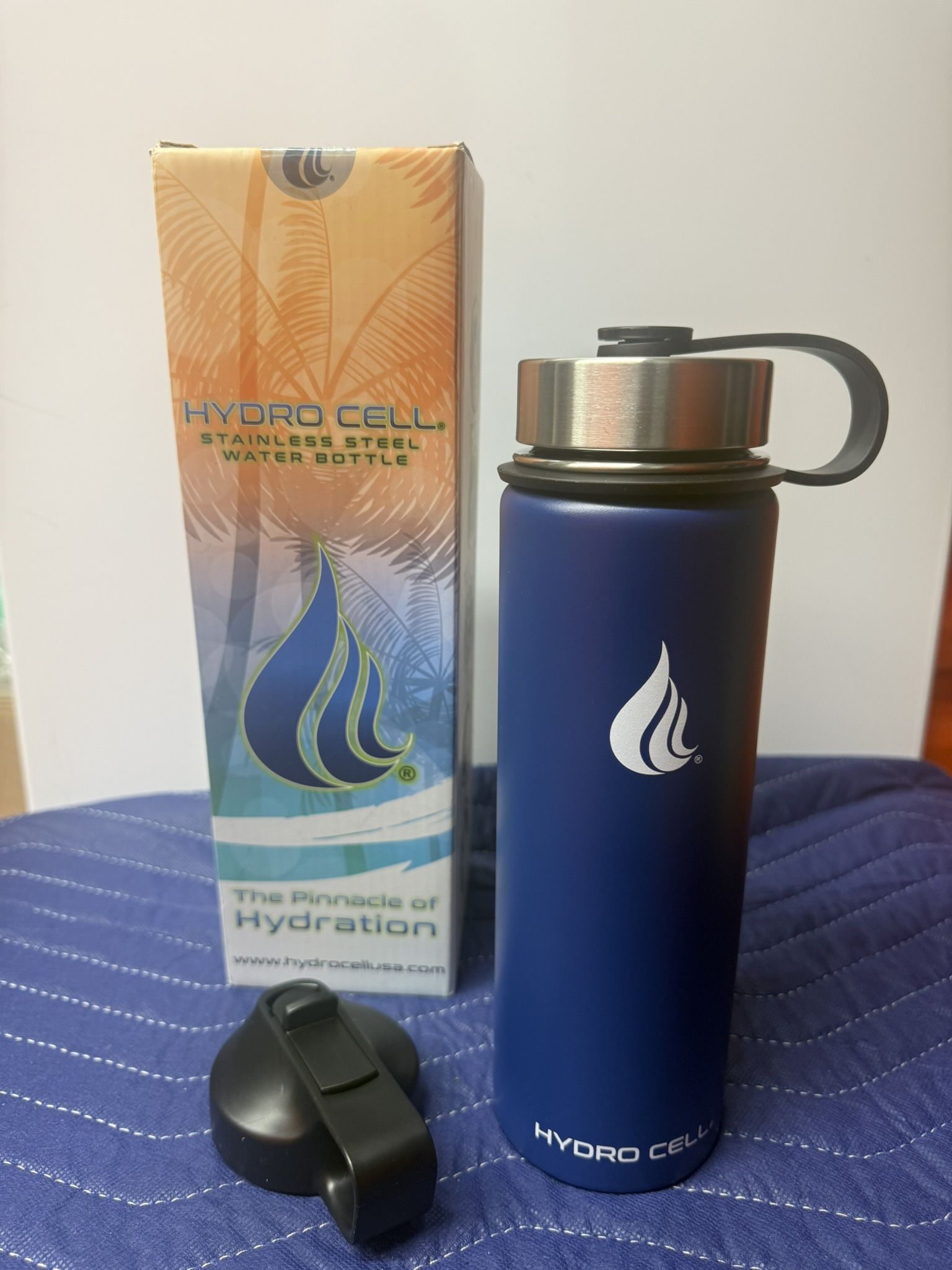 HYDRO CELL Stainless Steel Insulated Water Bottle https://offerup.com/redirect/?o=aHR0cHM6Ly9hLmNvL2QvZUx4TzRTdA== Navy, 24oz - $20 New. Never Used. Move out sale
