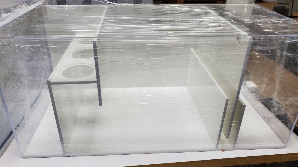 3/8" thick Sump with white baffles Rated for tanks uo to 180 gal. Very sturdy. Skimmer section 14.5x18 Return section 7x18 Water height 8" Pickup only