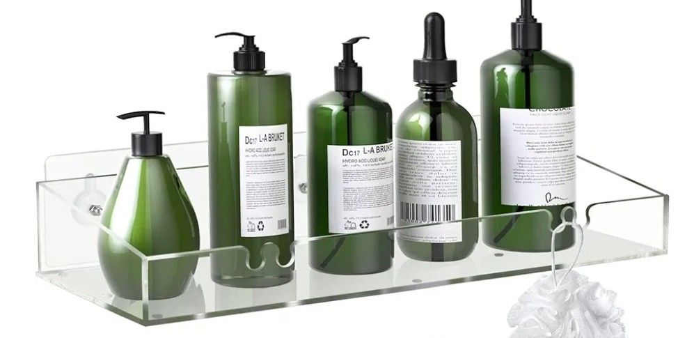 1 Acrylic Clear Shower Shelves, Adhesive Bathroom Shower Caddy Organizer