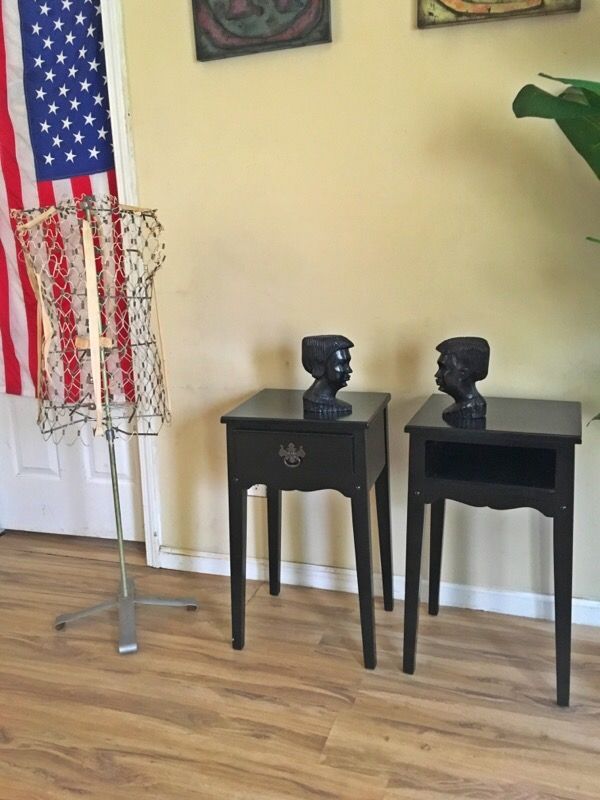 Both are real wood Original 1958 pieces One has drawer Other has no drawer Made original Located in Decatur