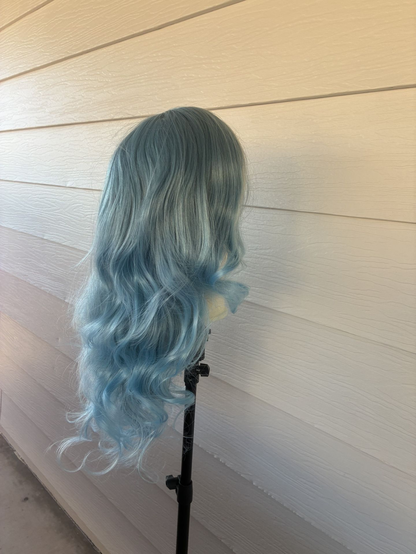 Blue Wig Long Curly Wavy Pastel Blue Wig Side Part Synthetic #93
