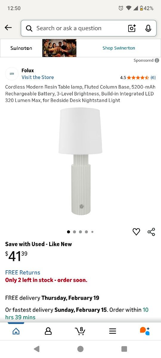 Cordless Modern Resin Table lamp, Fluted Column Base, 5200-mAh Rechargeable Battery, 3-Level Brightness, Build-in Integrated LED 320 Lumen Max, for Bedside Desk Nightstand Light