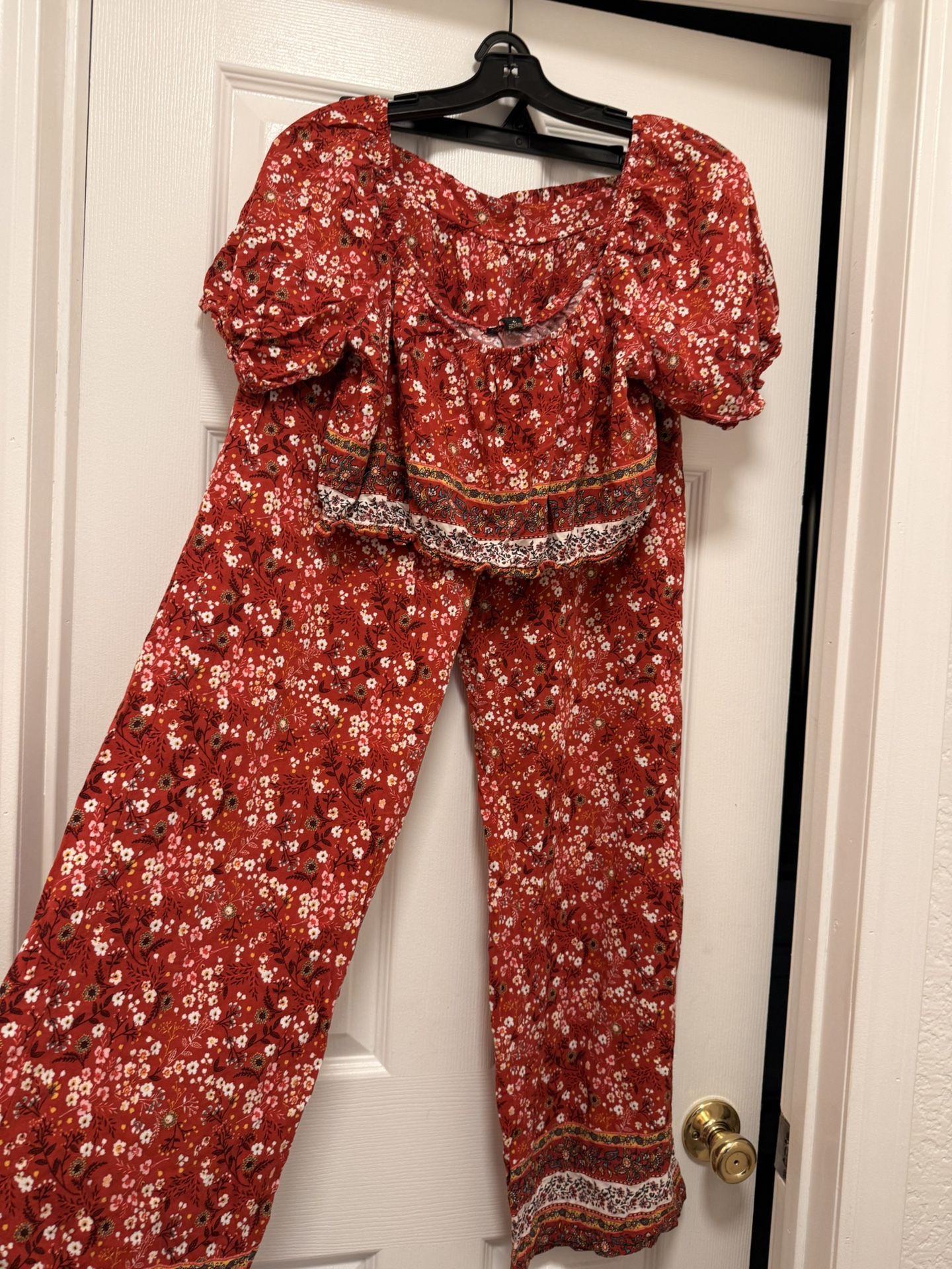 Floral Off Shoulder Two Piece Set Palazzo Pants Wide Leg Top SZ M