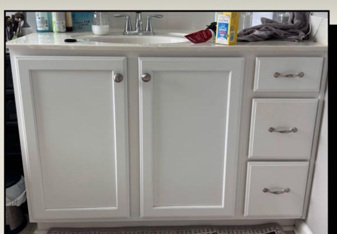 A bathroom vanity set. Included are: - 2 Vanities - 2 Mirrors w/Spring Loaded Wall Clips - 2 Granite tops - 2 Working Sinks - Precut Holes for Plumbing Price: ($150) All details in the photos. No damage to either vanity. These are $750 each new. Selling two for the price of the one. If you prefer, I know an excellent handyman who can deliver and install them for you. With my recommendation, he will give you a good price for the service. Ask me and I will send you his contact details. Thanks!
