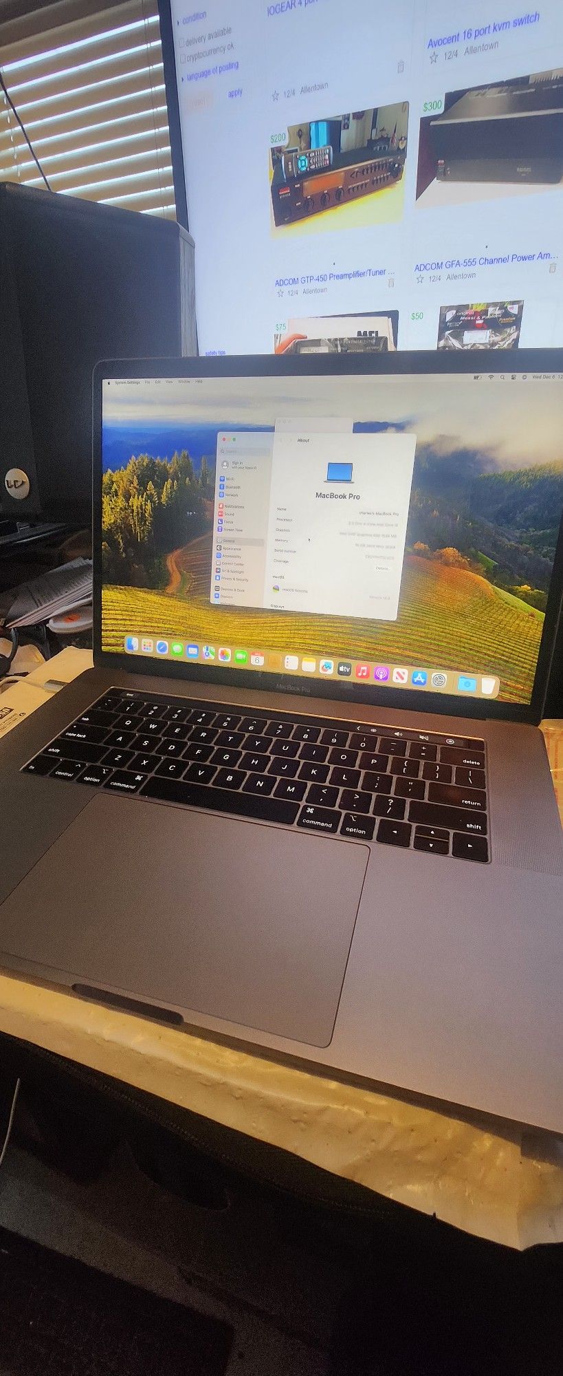 2019 macbook pro 8 core 16 threads 512 mvme ssd 16gb ram Macos sonoma Charger & case