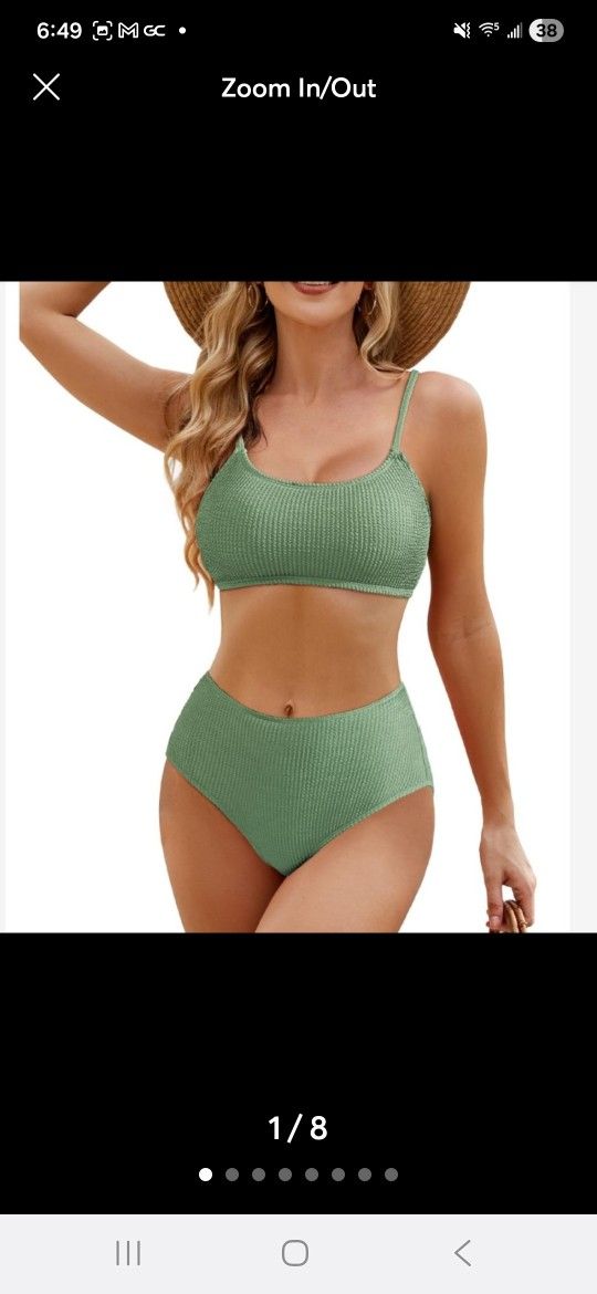 Chic Retro Women's Green Ribbed High-Waist 2 piece Bikini S
