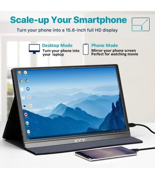 KYY Portable Monitor 15.6inch 1080P FHD USB-C, HDMI Computer Display HDR IPS Gaming Monitor w/Premium Smart Cover & Screen Protector, Speakers, for Laptop PC MAC Phone PS4 Xbox Switch
