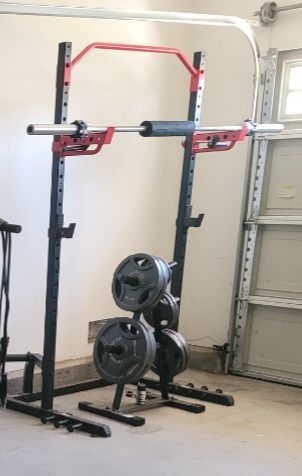 Barely used - Like NEW- SUNNY SQUAT RACK, 245LB WEIGHT SET, BAR, BENCH & WEIGHT RACK Sunny Squat Rack + 245LB Fitness gear weight plates (2.5lb, 5, 10, 25, 35 & 45lb) & Bar w/CAP A Frame Olympic Weight Rack RETAIL VALUE $700 *****Selling ours for $450 FIRM! That's a $250 value or 36% off FIRM ON PRICE East Highland - Weaver / Water CASH ONLY!