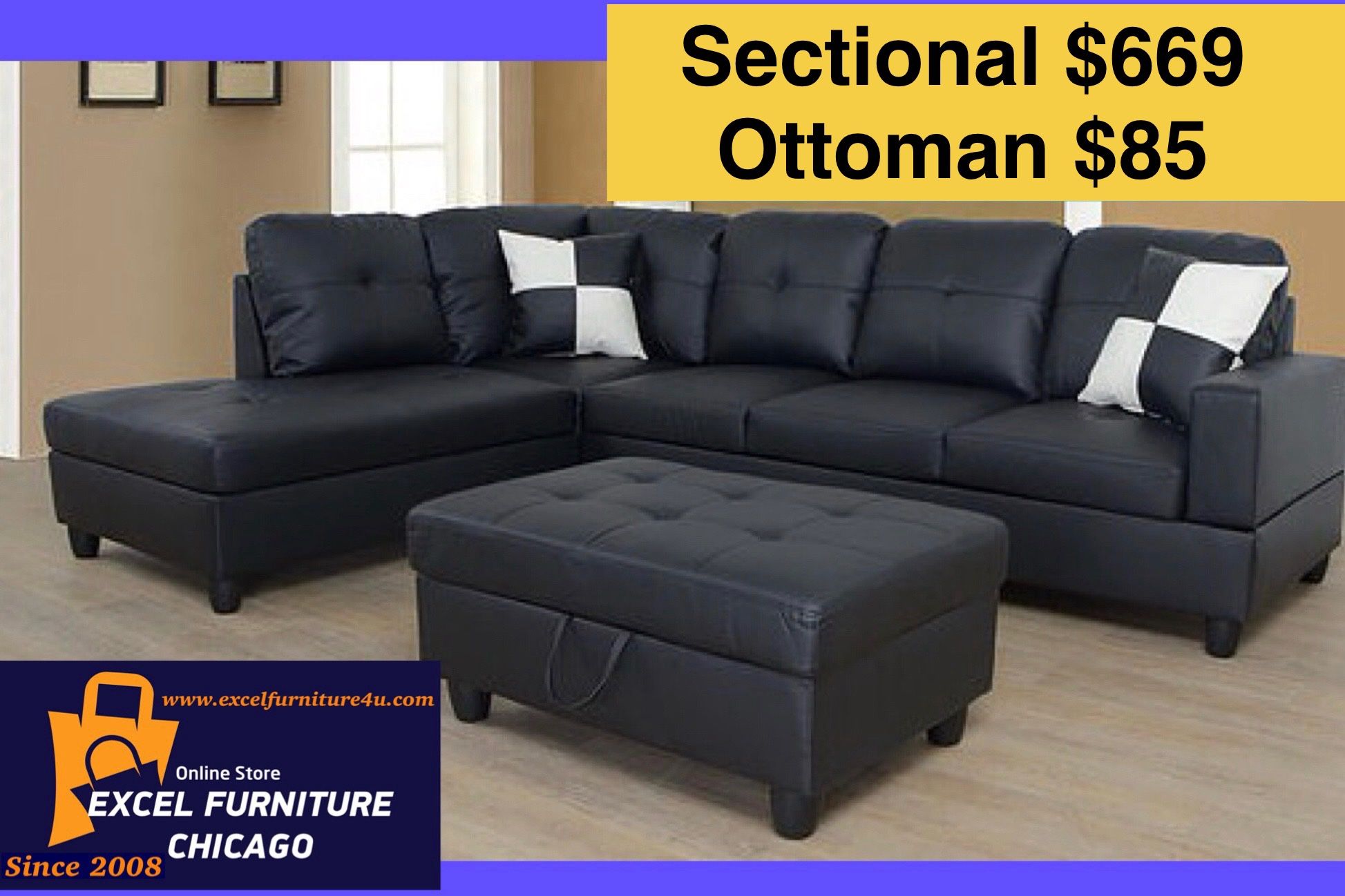 ♦️ORDER NOW – PAY WHEN IT ARRIVES. Chicagoland area and around ( Chicagoland, Rockford, Milwaukee) 🎁BIG SALE🎁BRAND NEW FURNITURE Buy sectional ($669) with ottoman ($85), get: FREE DELIVERY FREE TAX $754 —Sectional with Ottoman Cash or Zelle upon delivery EXCEL FURNITURE CHICAGO Online Local Furniture Store SINCE 2009 🌸excelfurniture4u. com🌸 #Sofa, #couch , #love seat, #chair, #sectional, #Recliner, #reclining set, #bedroom, #dining room, #table, #bed, #dresser, #chest, #nightstand