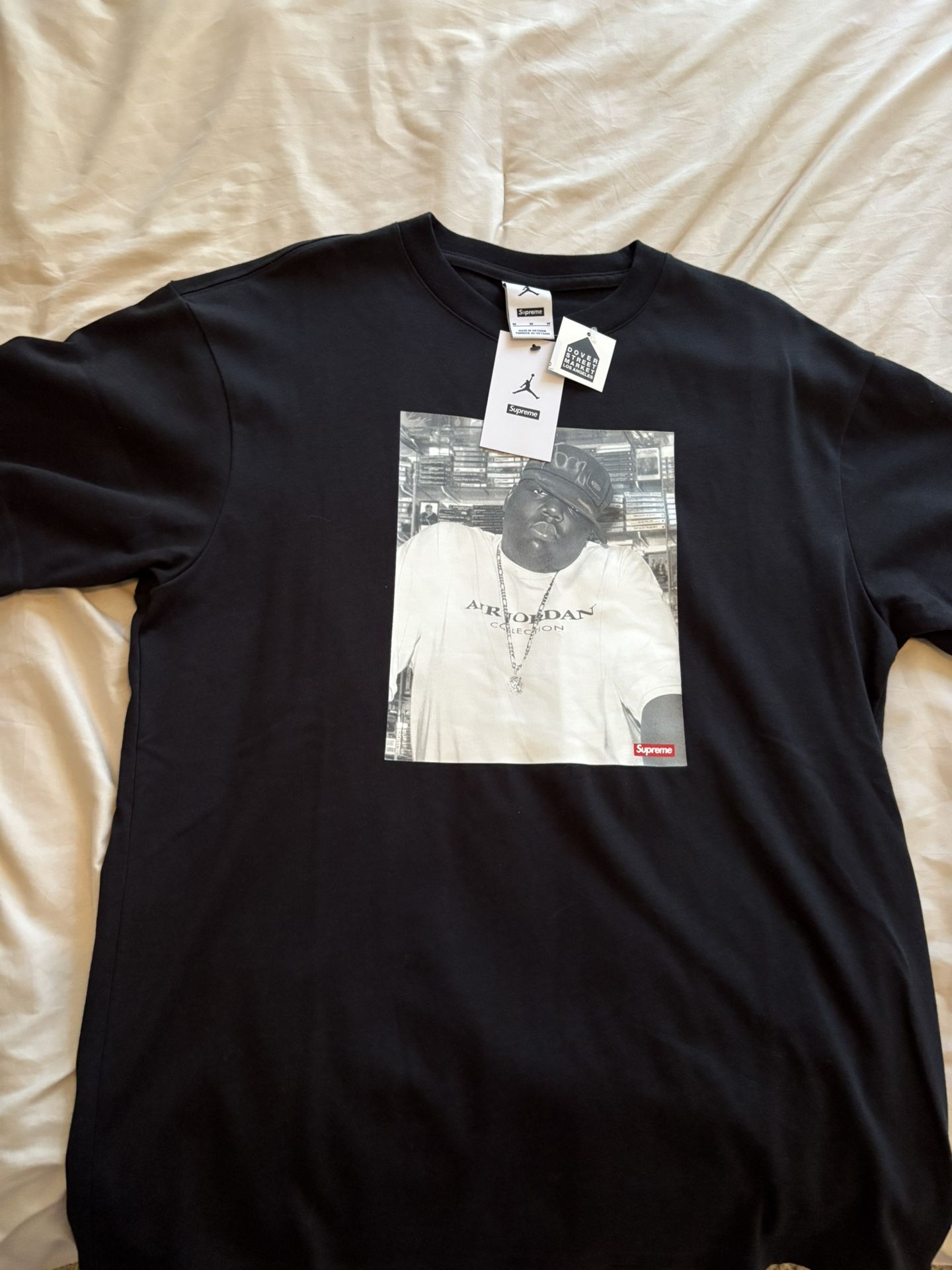 Size medium black supreme Jordan biggie shirt brand new with tag never worn open to trades