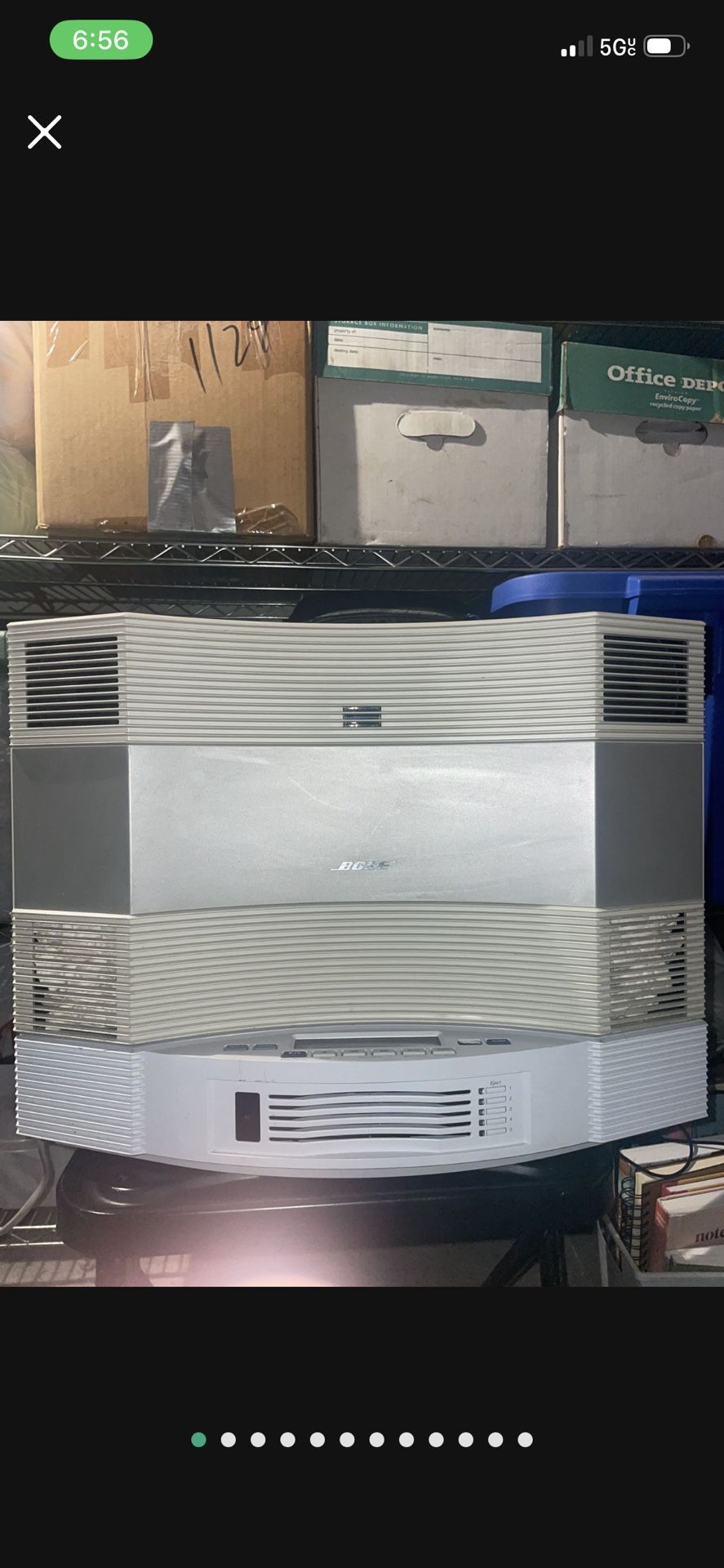 Hello offer up, Here we a have a very nice sounding Bose wave cd 💿 player with multi cd changer. This radio sounds fantastic nice rich bass great mids and highs great sounds for such a small print. Thank you for looking at ad. Note… Screen do light up green but there’s no numbers or letters and on changer does not read discs but it does eject all of them. Thnx sold for repair or for parts. Thanks.