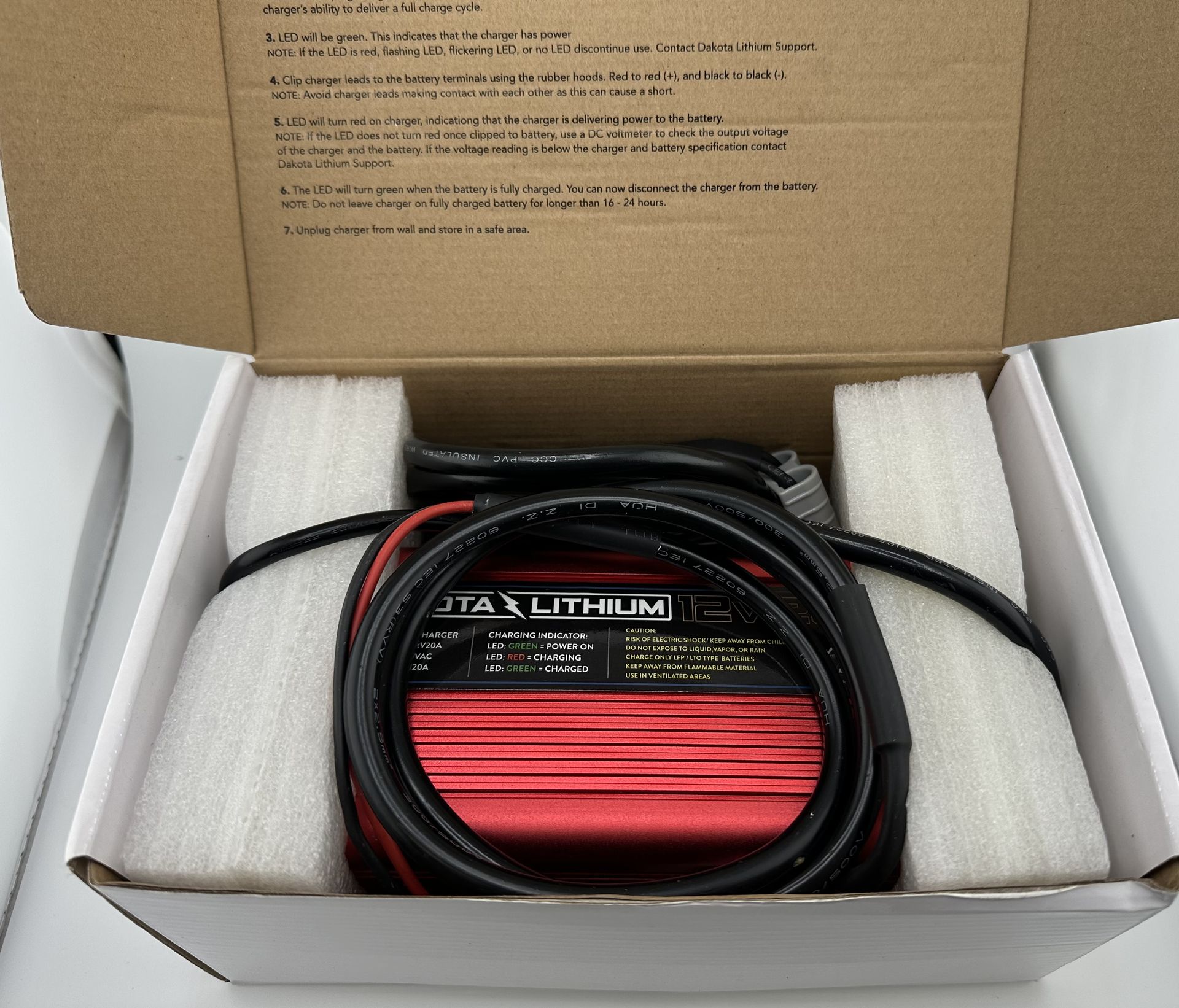 New, new n box. 20 amp LiFePO4 charger for fast charging of larger batteries. Optimal for Dakota Lithium 54Ah, 100Ah, and 170Ah batteries. All 12 volt Dakota Lithium batteries should be charged using a LiFePO4 compatible charger.