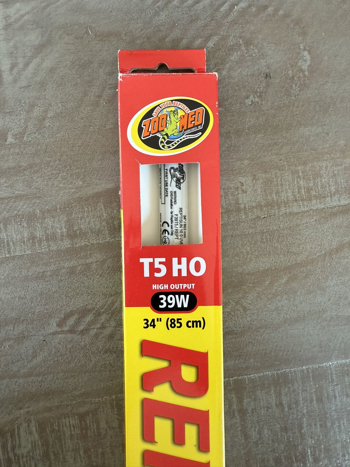Brand new Zoo Med Reptisun 10.0 UVB T5 High Output bulb. 39 watts, 34 inches long (85cm). Perfect for reptiles that need strong UVB exposure. Never used, still in original packaging. - Bulb only - Light fixture sold separately -