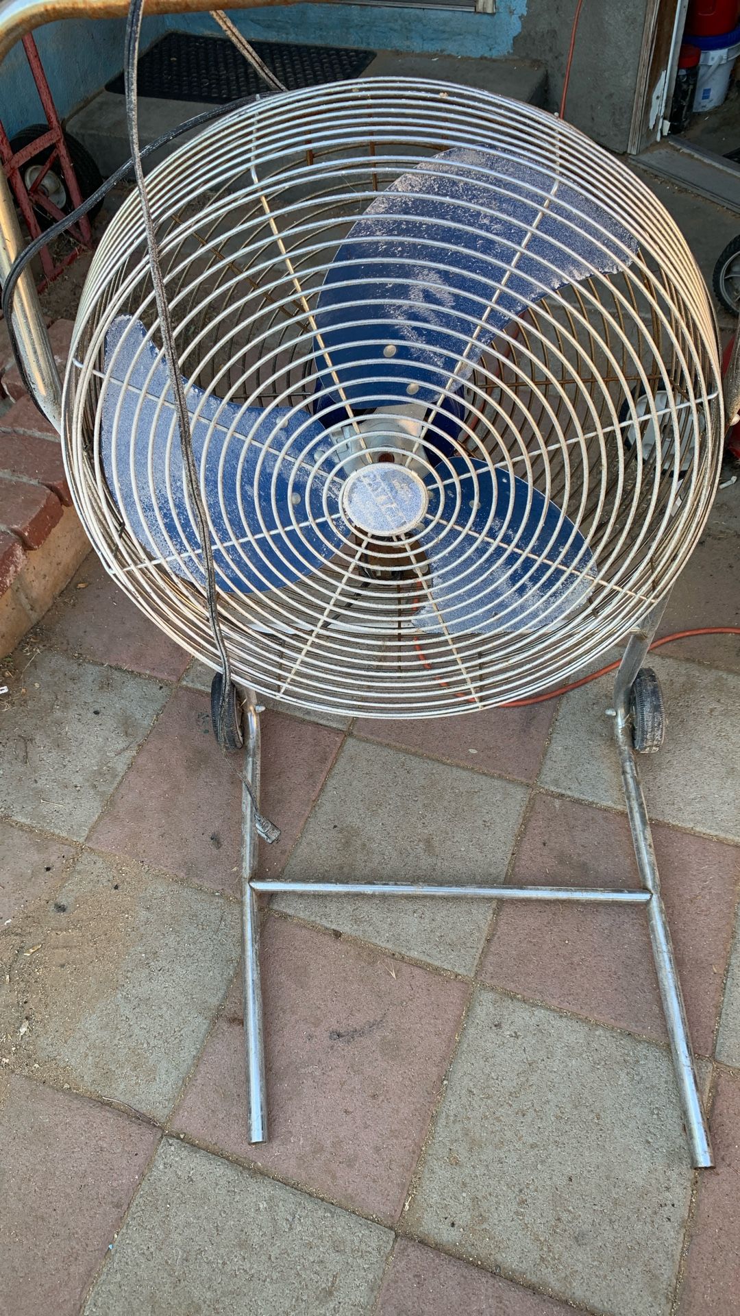 Old electric standup fan. 110 all three speeds work. It needs to be cleaned out.