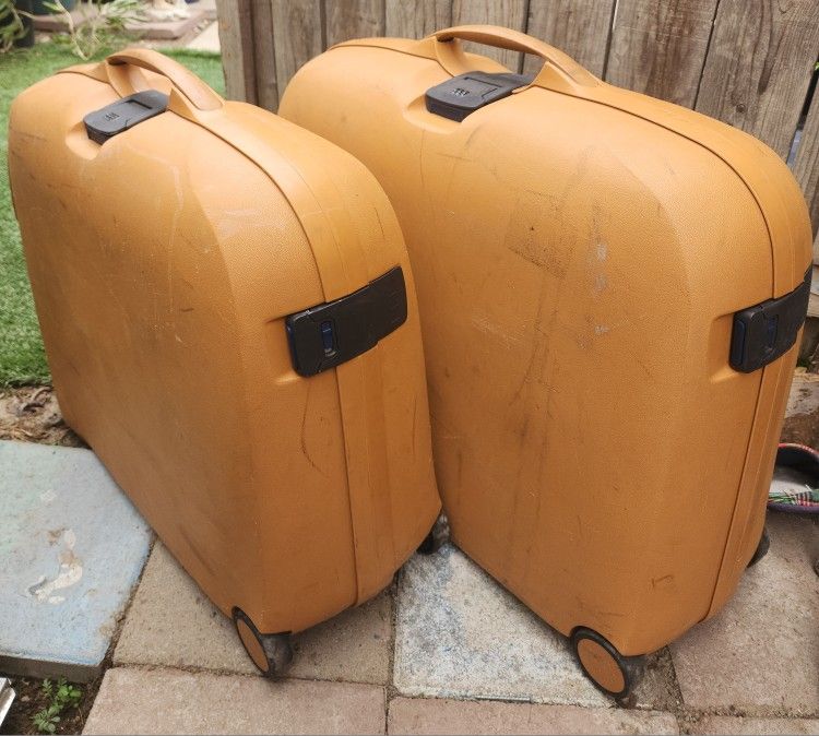 Samsonite hard shell cases (2) One is slightly bigger then the other... Both roll as intended Close perfect And the locks work on both No cracks, the outside has scuffs and random mark here and there while the insides are immaculate. The smaller one as a issue with the material, check the photo.. Asking $40 for both