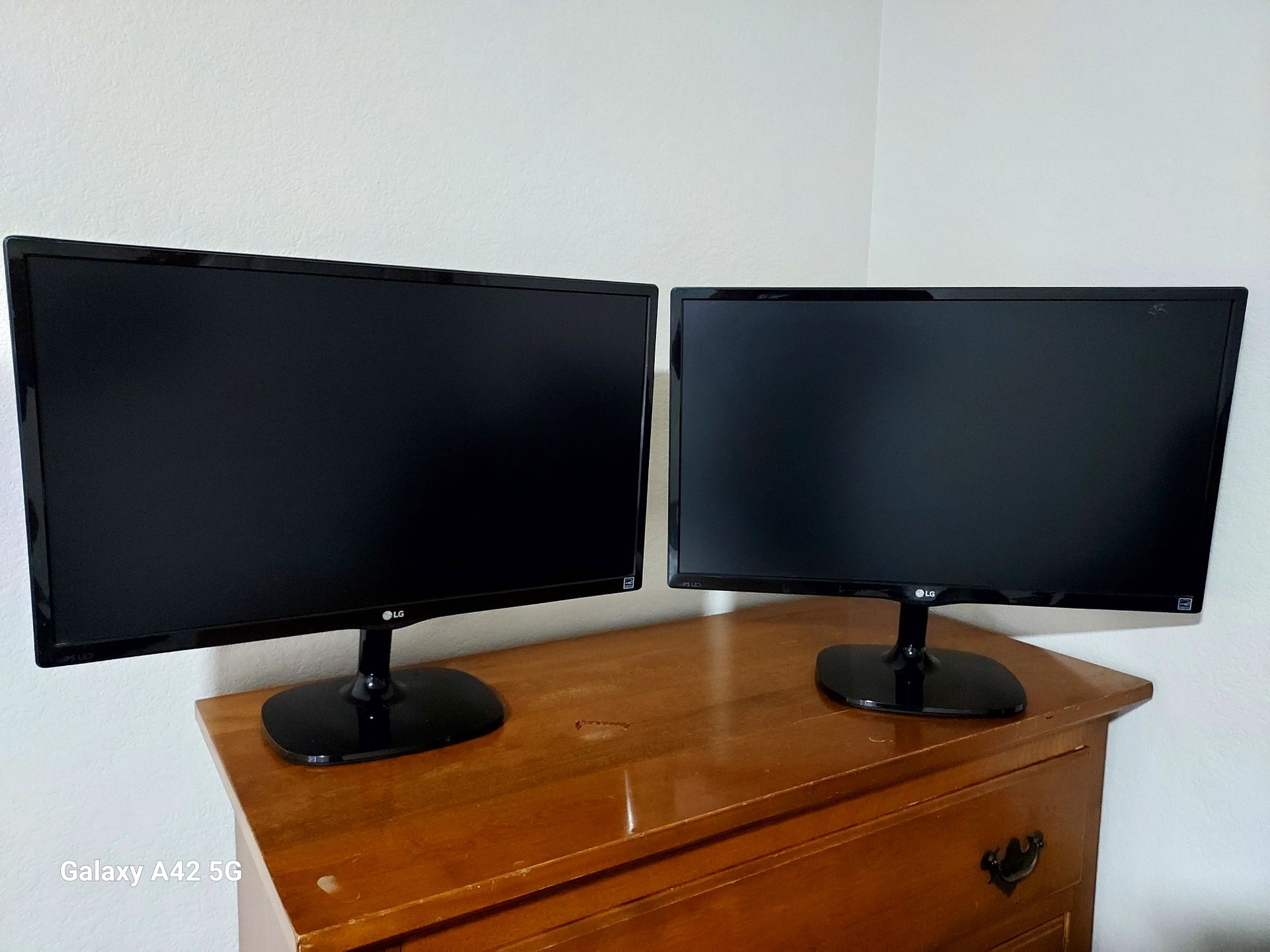 Pair of LG 24MC57HQ monitors. Great condition, both work perfectly. 21x12 size screens. Power cords included.