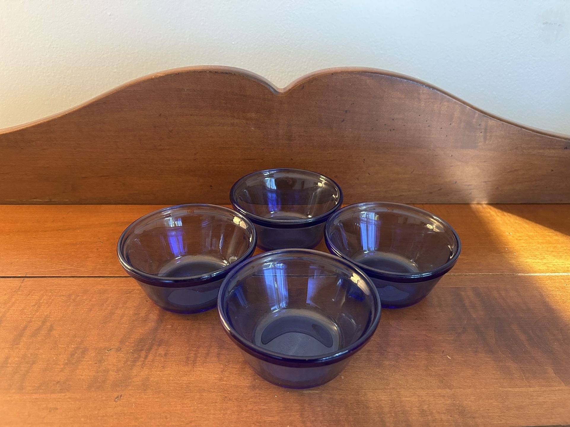 Set of 4 Cobalt Blue Glass 6 Ounce Custard Cups 4” x 2”