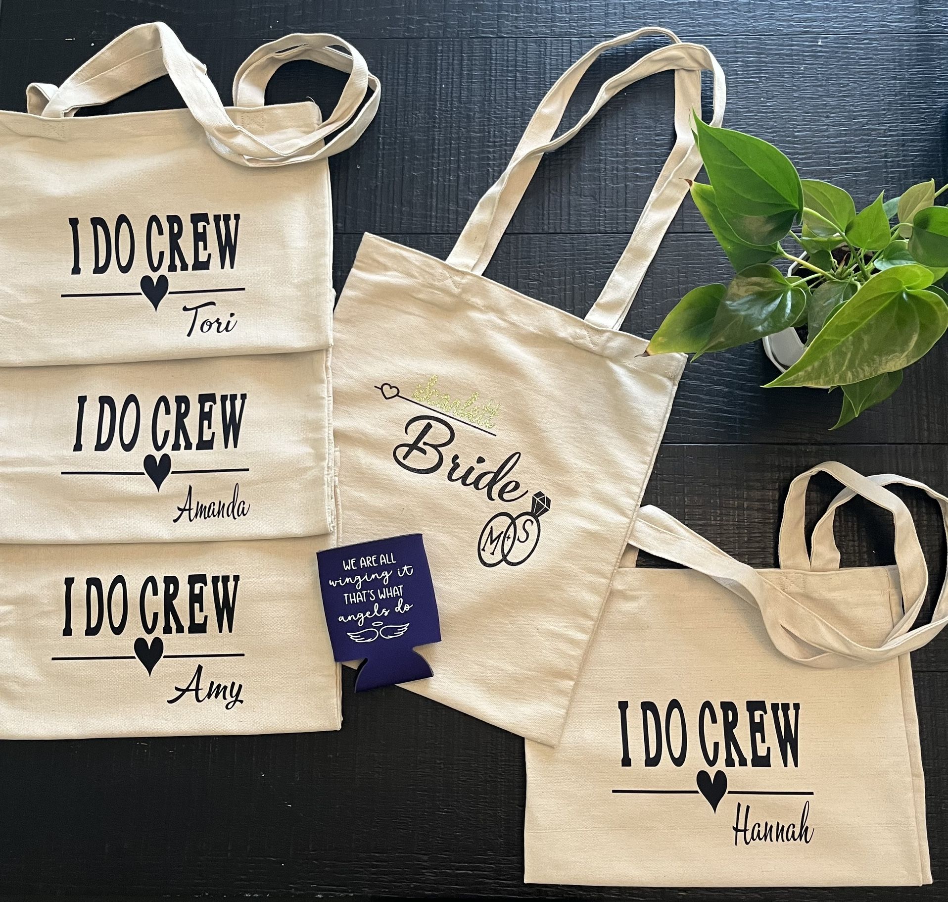Custom totes Can use for weddings, girls trip, birthday present beach bag or just because Cup $15 Tank $20 Basic tote $15 Black and white tote $20 With make up bag $30 Msg me and I can design your theme with you